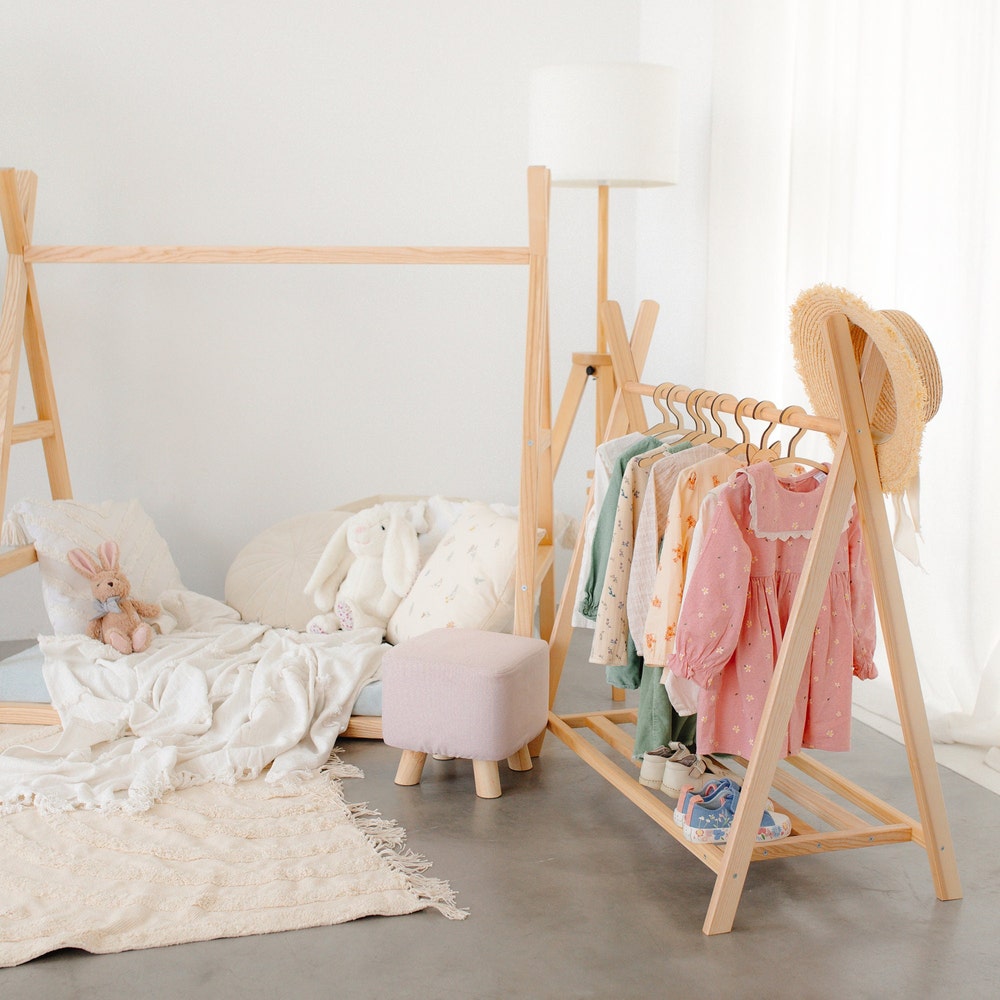 Introducing our stylish and functional Clothing Rack with Shelves and Hangers, perfect for organizing your little one’s wardrobe!