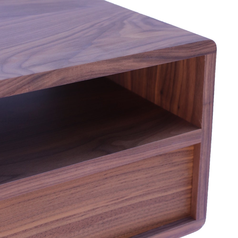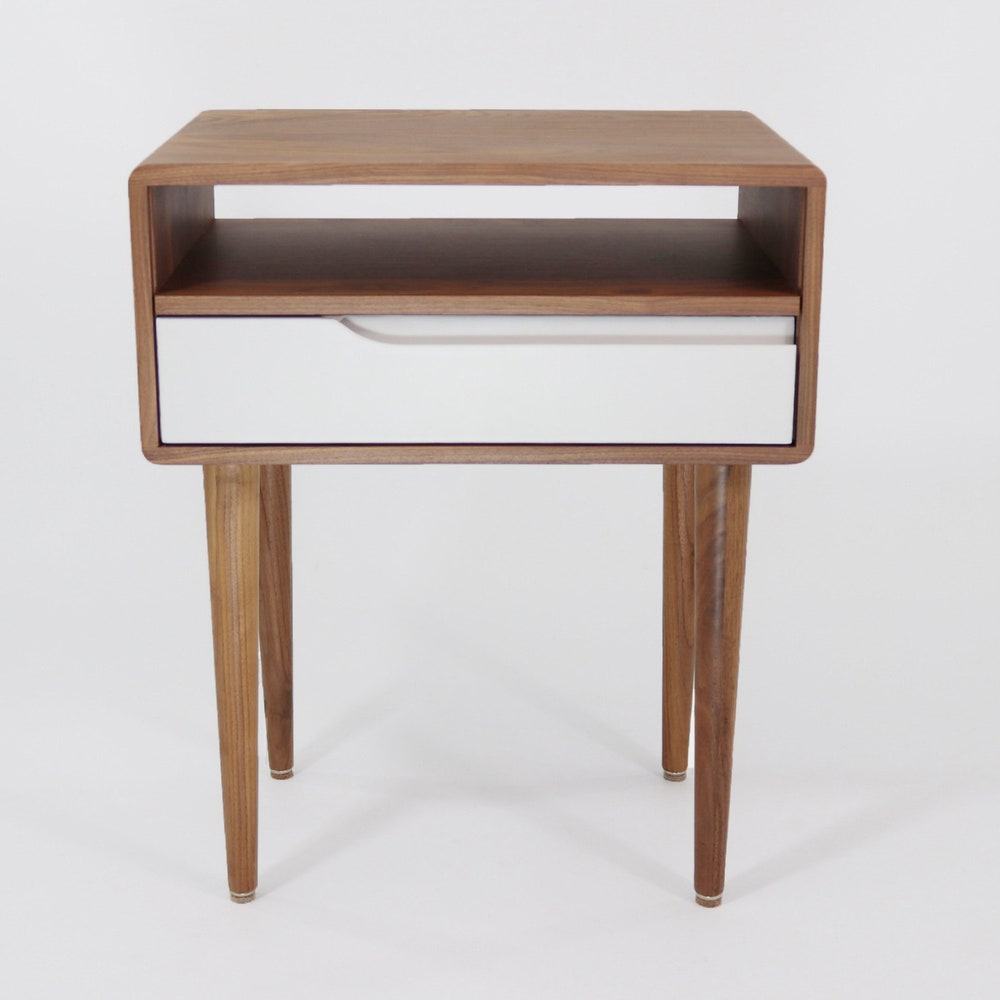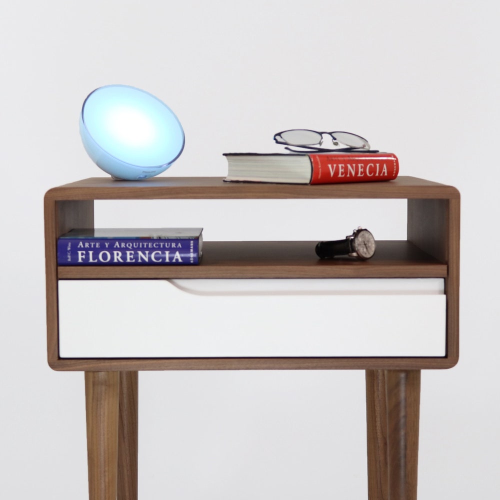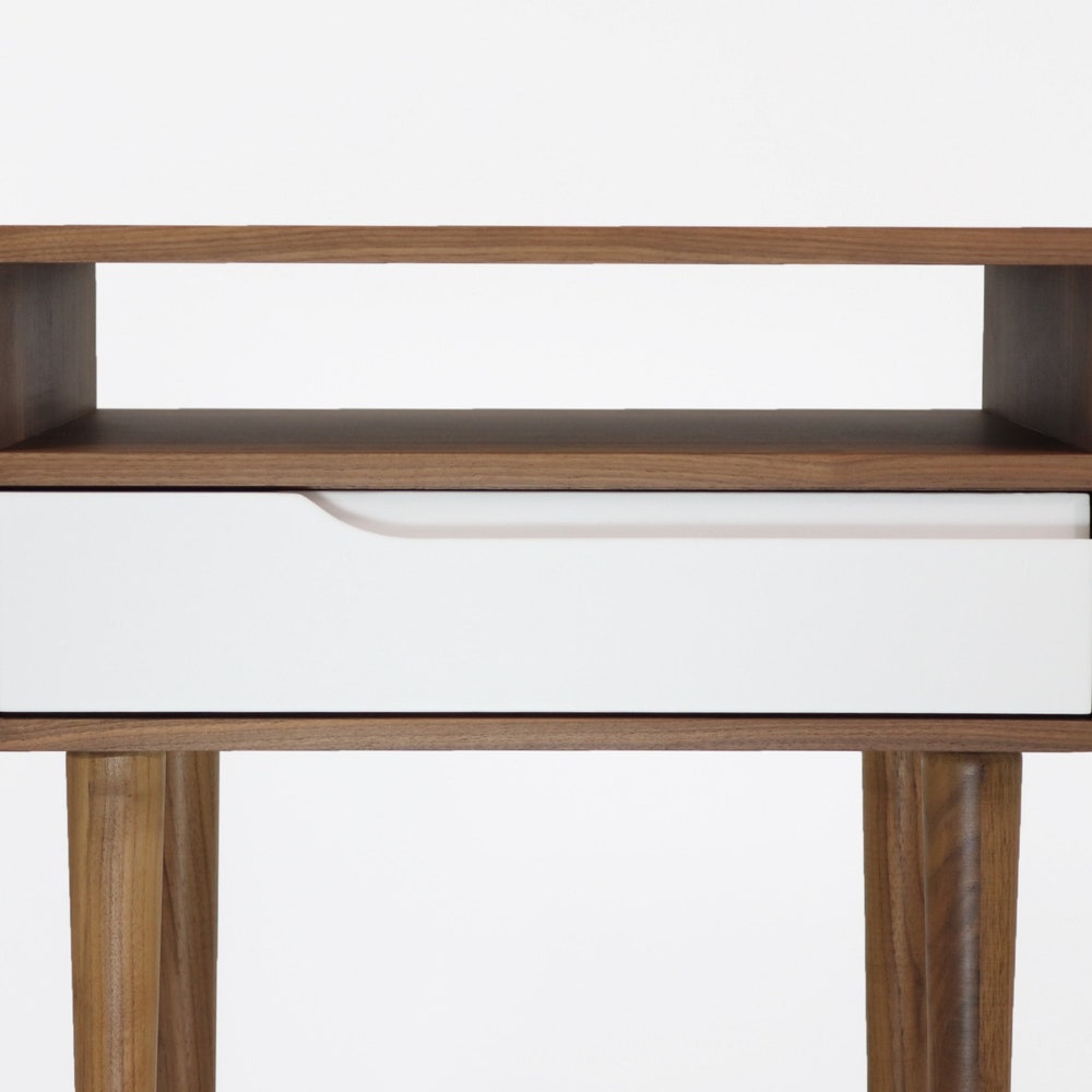 Nightstand, Bedside table, side table with shelf and white lower drawer in solid Oak or Walnut.