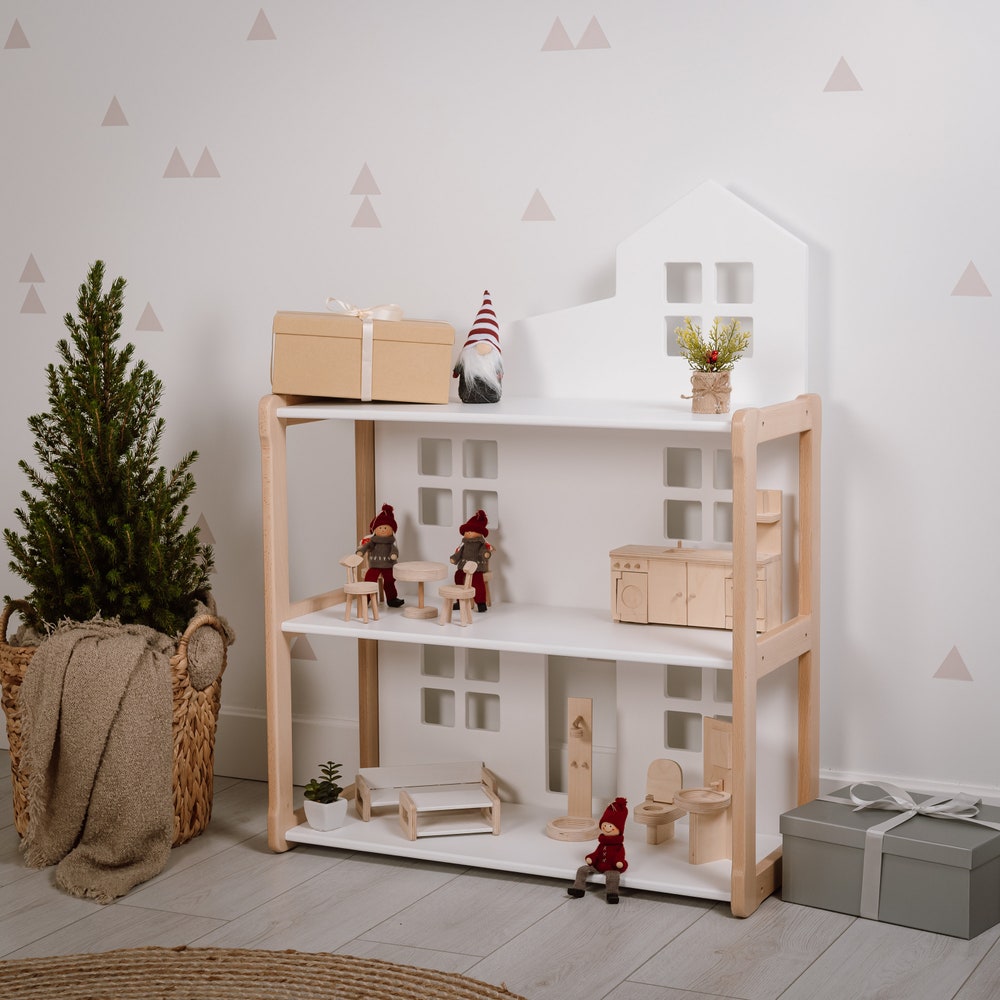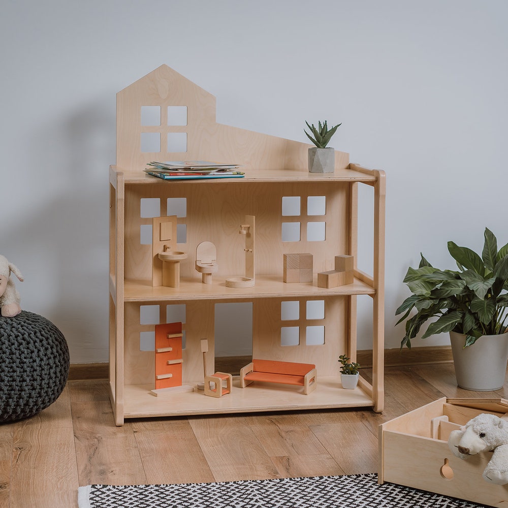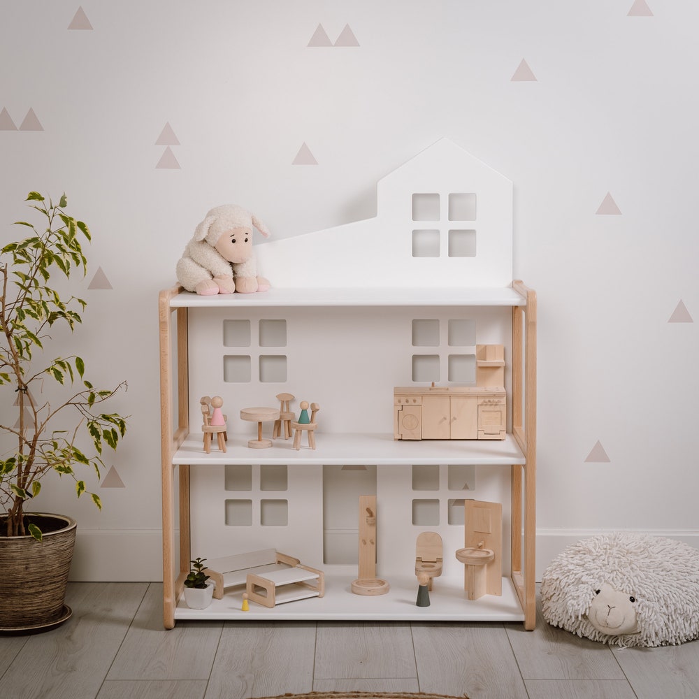 NOBI DOLLHOUSE Bookshelf, MONTESSORI Bookshelf, Wooden Doll House Furniture Nursery Bookshelf Playroom Décor, Gift for kids