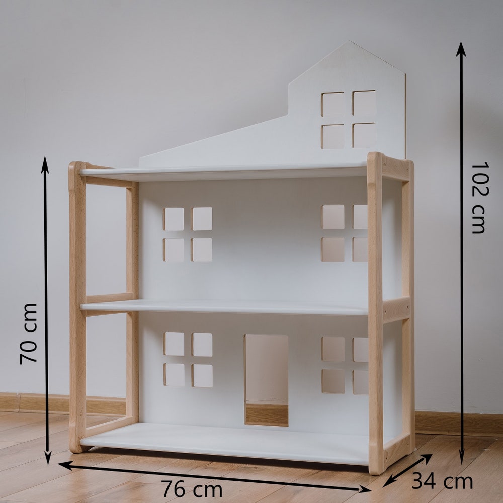 Elevate your child’s world with the Woodjoy Doll House Bookshelf NOBI—a fusion of dreams and functionality, enriched with quality craftsmanship, safety, and an everlasting design.