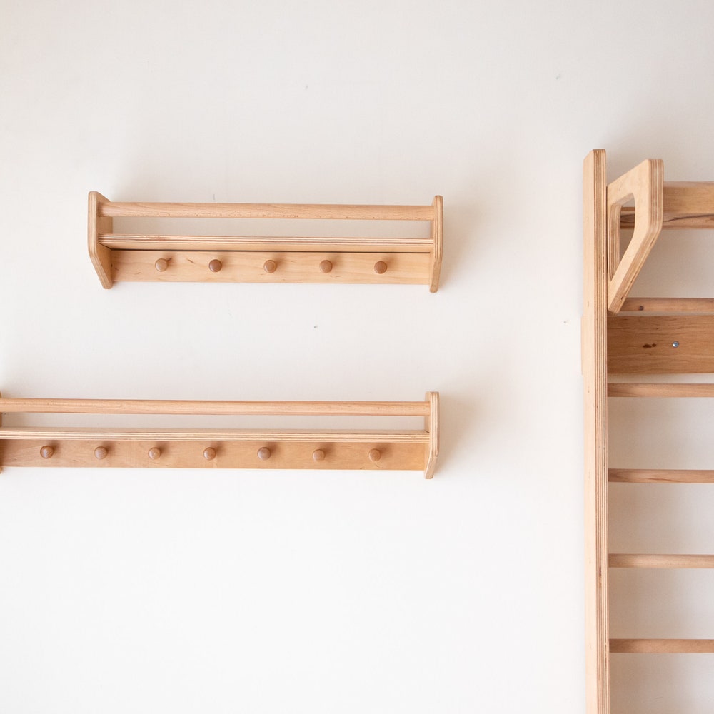 Nursery bookshelf with hooks, Kids book shelf, Floating shelves, Clothing rack, Toddler toys storage Wall mount toy shelf, Modern Boho Decor