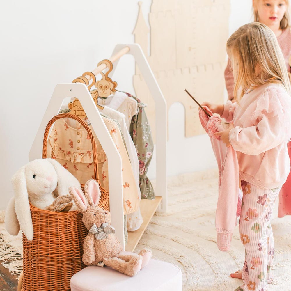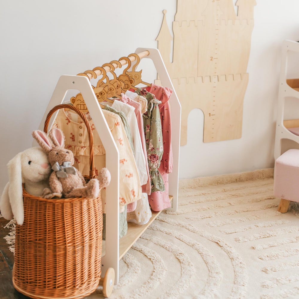 Nursery Set – Montessori clothing rack with shelf + Open toy shelf, Wardrobe Furniture, Baby Shower Decor Toy Storage, Kids dress up station