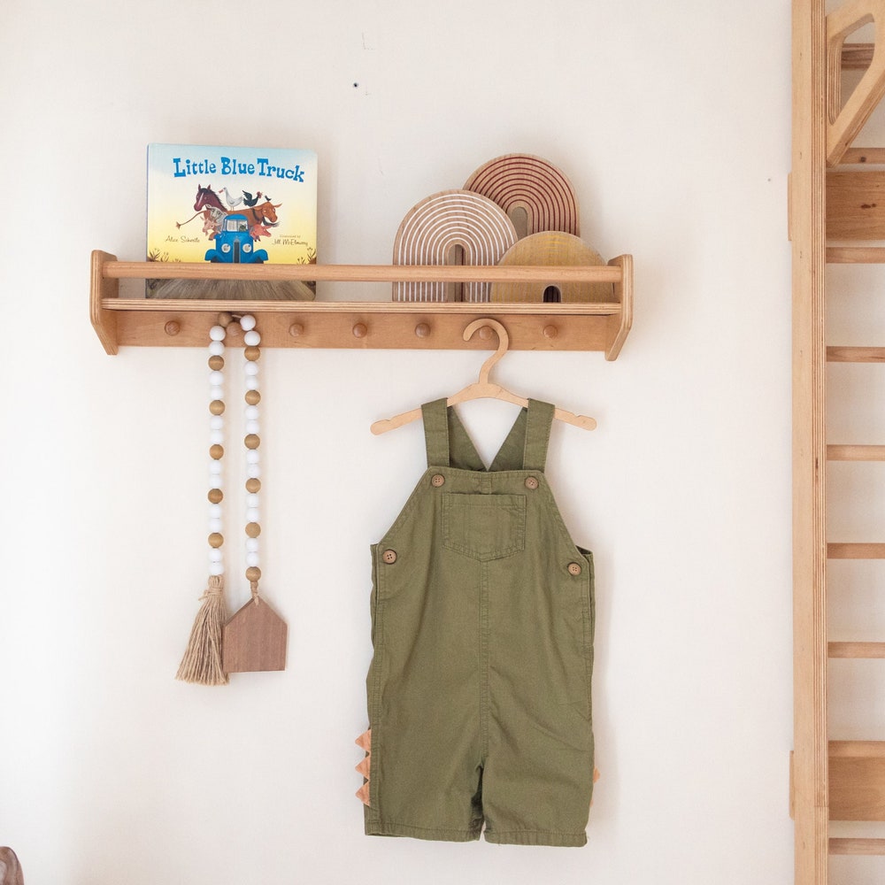 Nursery Wall hook rack, Hanging bookshelf, Montessori toy shelf, Unique nursery decor Playroom furniture Montessori toy shelf Book storage