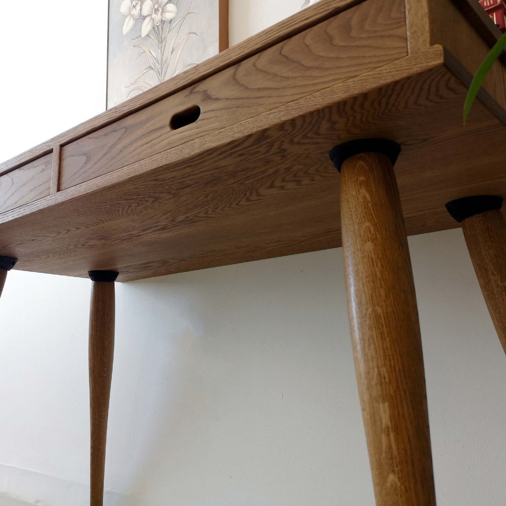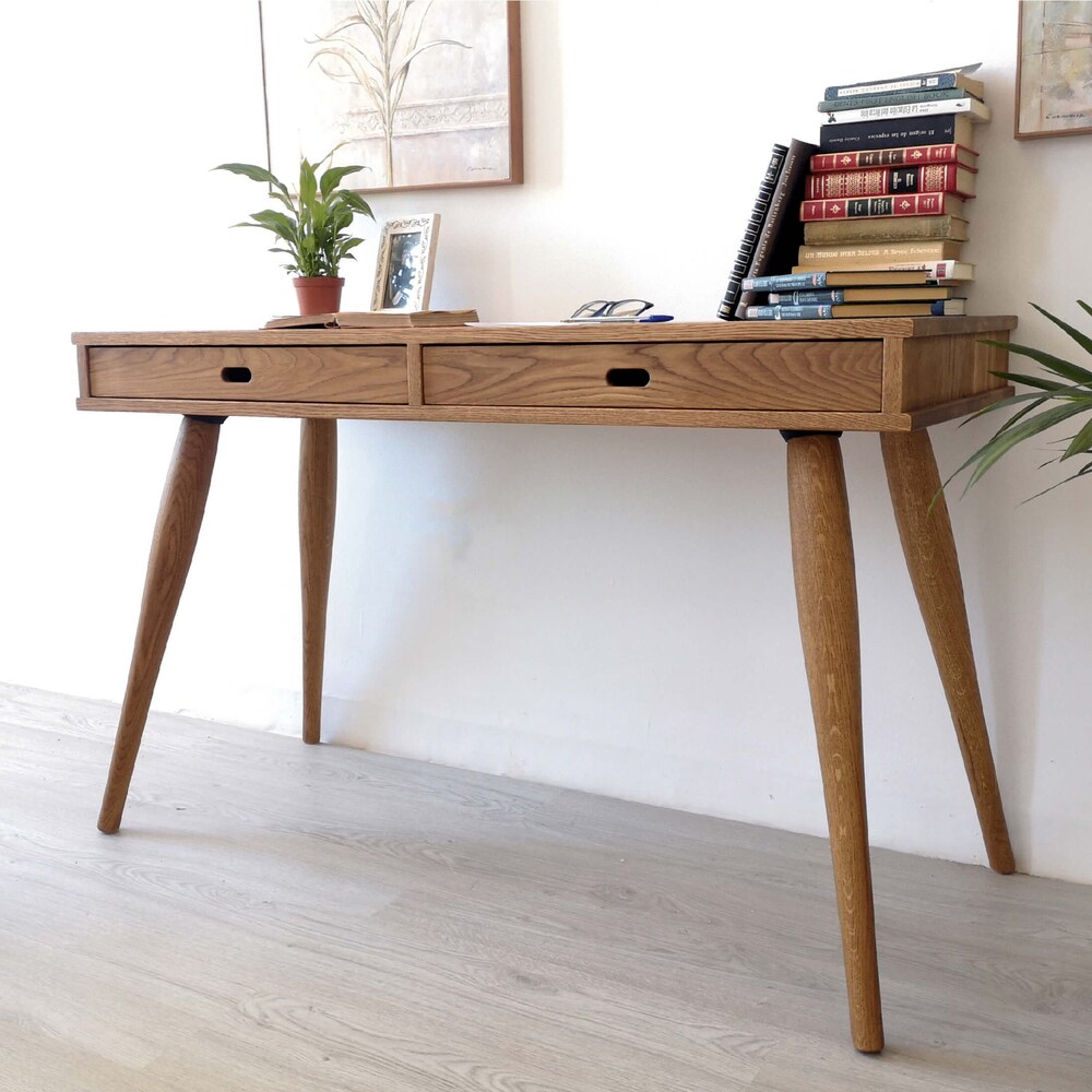 This office table made of solid oak wood was manufactured by our cabinetmakers taking care of even the smallest detail in thicknesses, to get closer to balance in its forms. The ecological finish allows us to provide natural and 100% ecological furniture. In our workshop we take care of even the smallest detail, with artisan processes and techniques from our ancestors, to offer you this piece that will pass from one generation to another. We incorporate a new fixing system for the oak legs, which will give us full stability. For a uniform look, feel free to pair this piece with other products from our collection.