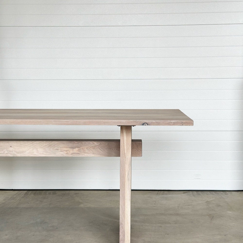 This oak dining table features a striking intersecting solid wood beam, complemented by thick plank-style legs for a heavy and organic design. O R D E R I N G / / -Please choose the length in the drop down menu If a standard table is purchased from the listing it will be finished in […]