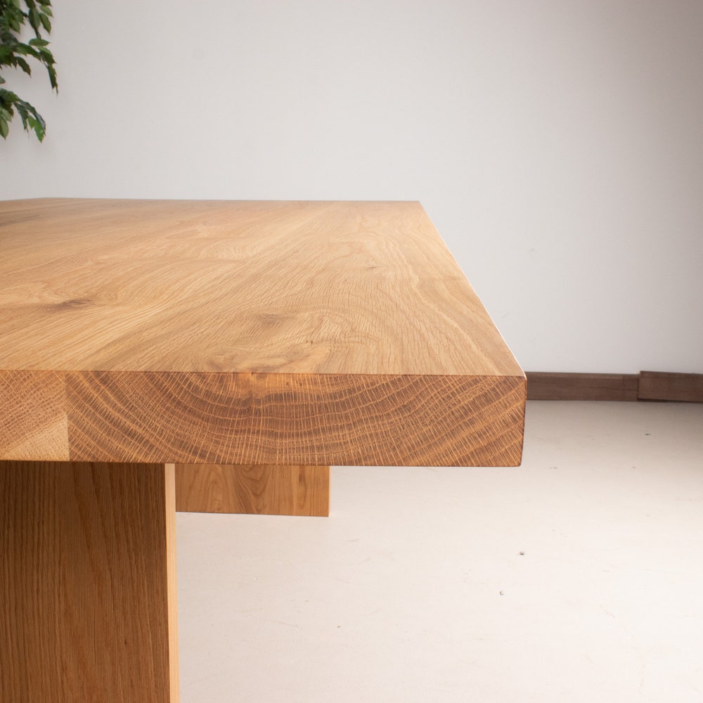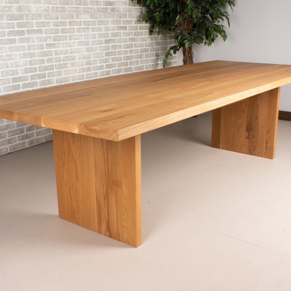 Oak Dining Table, Natural Wood Table on Wood Panel Legs, Wood Dining Room Table, Oak Trestle Table, Modern Harvest Table, Large Dining Table