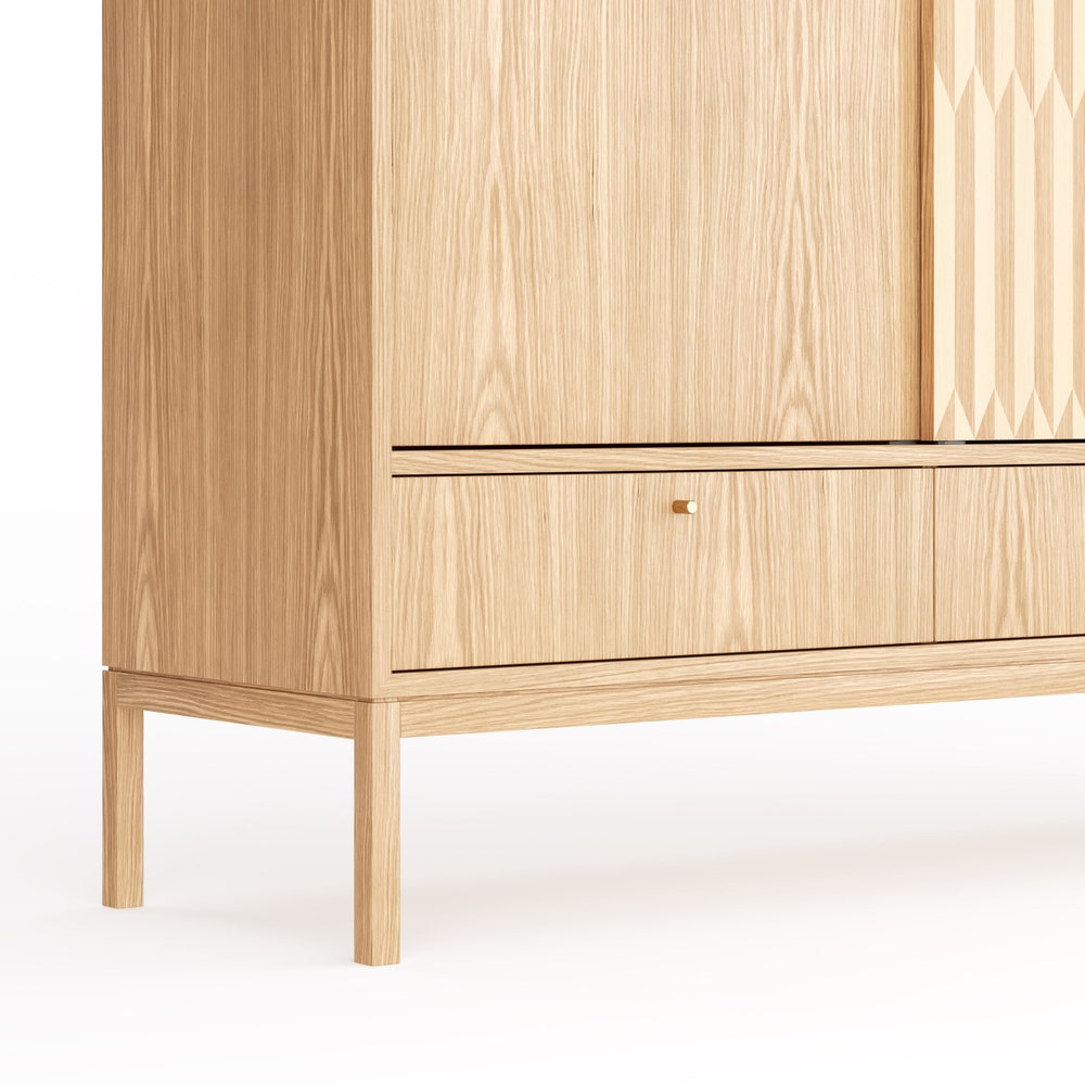 Sideboard, made of solid oak wood and wood covered with natural oak veneer.