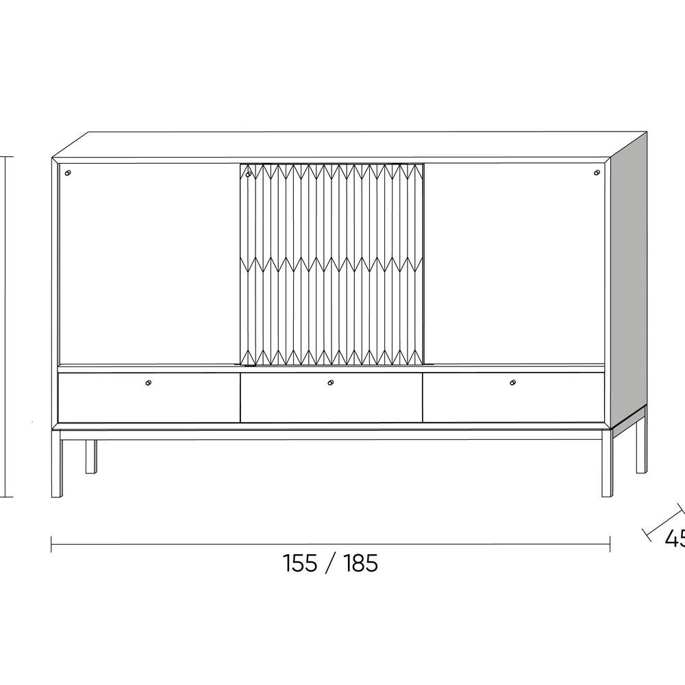Beautiful oak highboard with three inlaid sliding doors and three drawers in mid-century modern style, brass handles.The middle door is inlaid (oak + maple veneer).Sideboard, made of solid oak wood and wood covered with natural oak veneer. Two adjustable shelves behind each door.Handmade in Poland. Dimensions:width: 155 cm or 185 cmdepth: 45 cm height: 110 […]