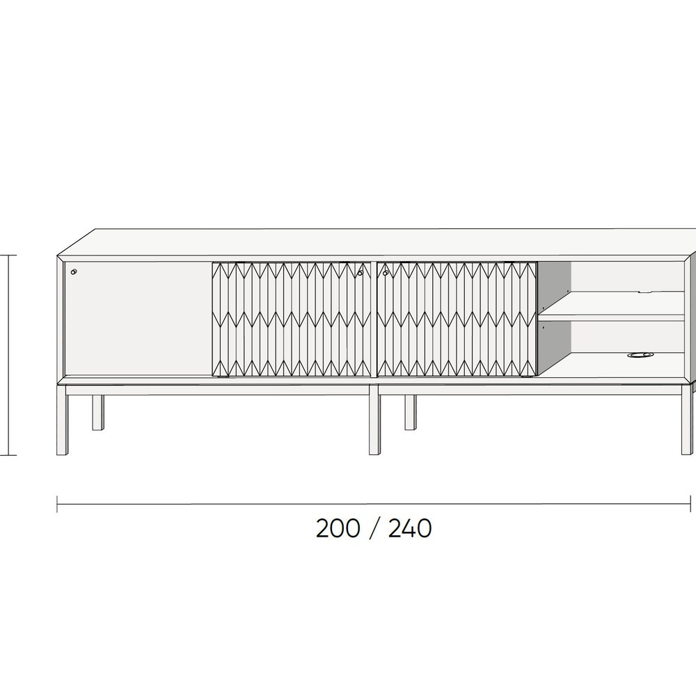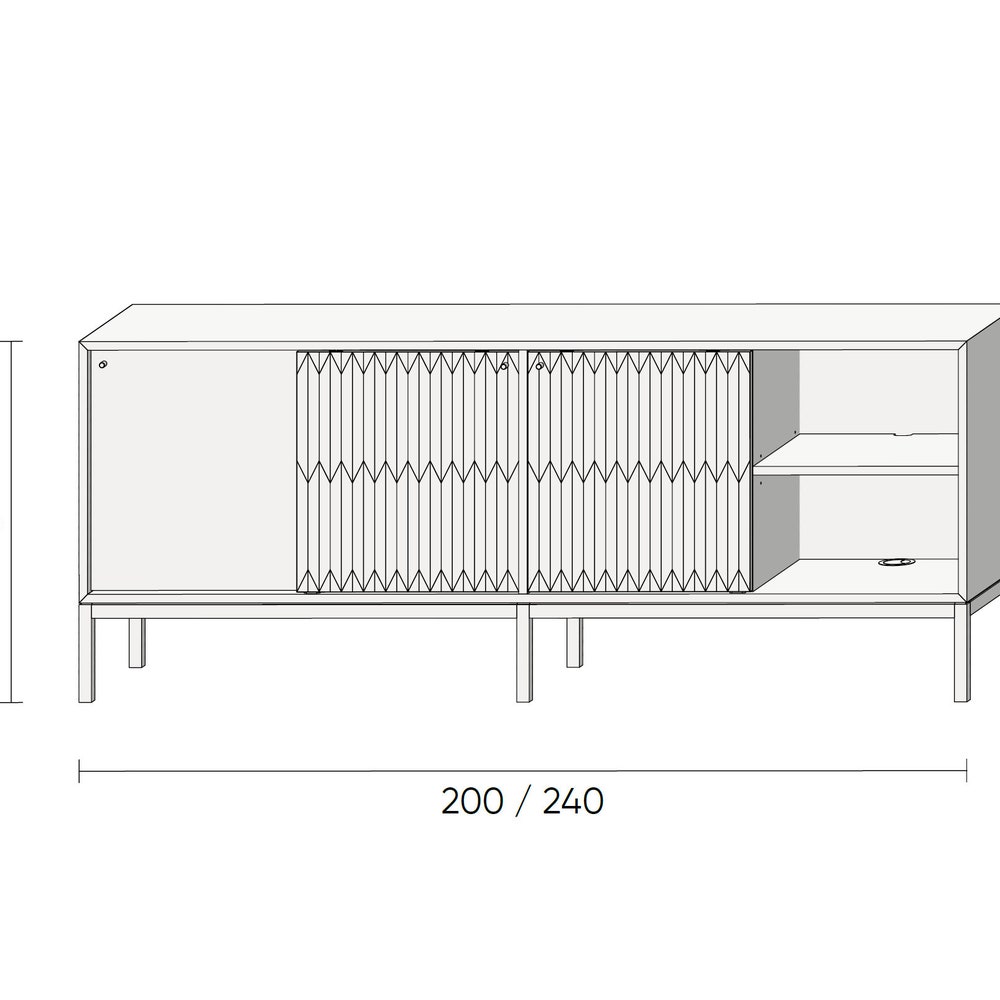 Beautiful oak long sideboard TV stand with three inlaid sliding doors in mid-century modern style, brass handles.The middle doors are inlaid (oak + maple veneer).Brass handles. Cable hole on the right side.Sideboard, made of solid oak wood and wood covered with natural oak veneer. One adjustable shelf behind each door.Handmade in Poland. Dimensions:width: 200 cm […]