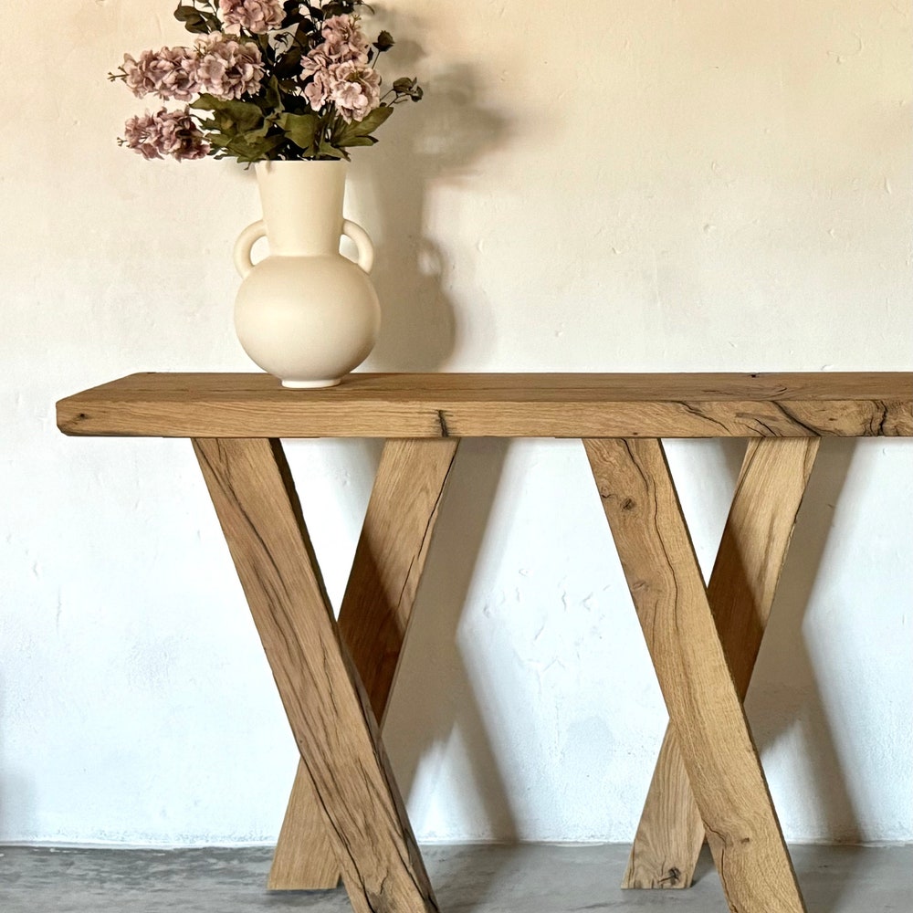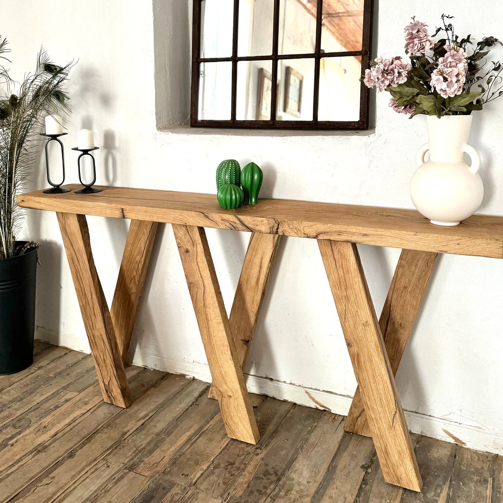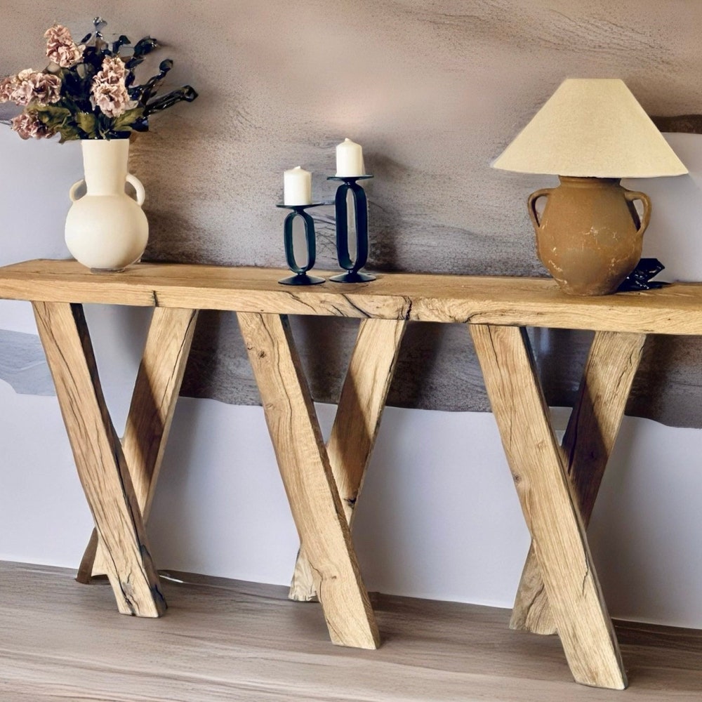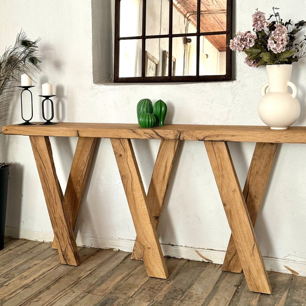 Oak Modern Rustic Console Table, Modern Entryway Table, Unique Furniture and Decor, Sofa Console Table X Legs