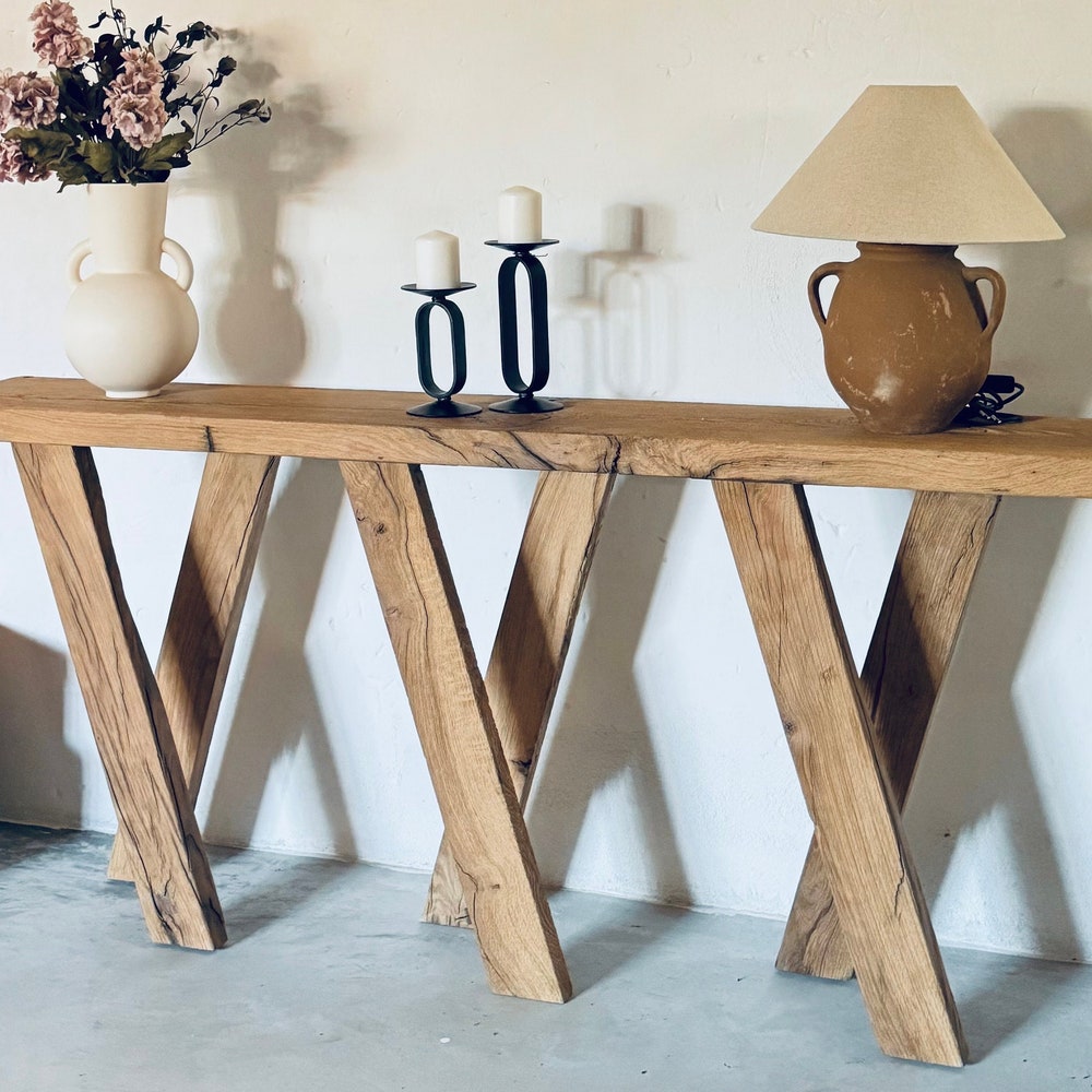 Oak Modern Rustic Unique Console Table, Modern Entryway Table, Unique Furniture and Decor, Sofa Console Table X Legs…
