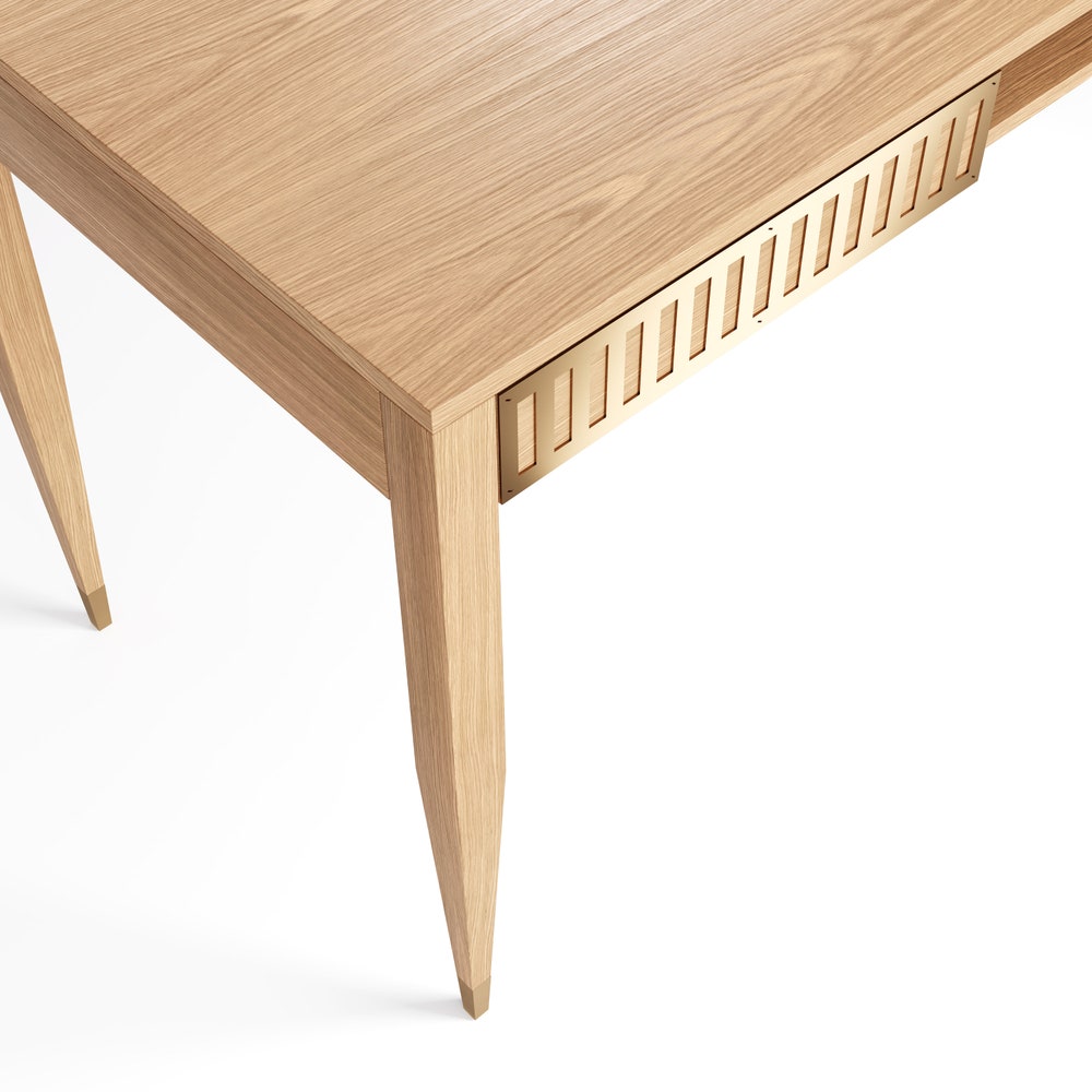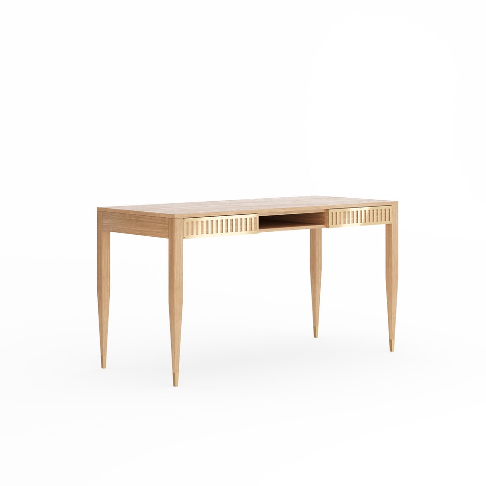 Desk, made of solid oak wood and wood covered with natural oak veneer.