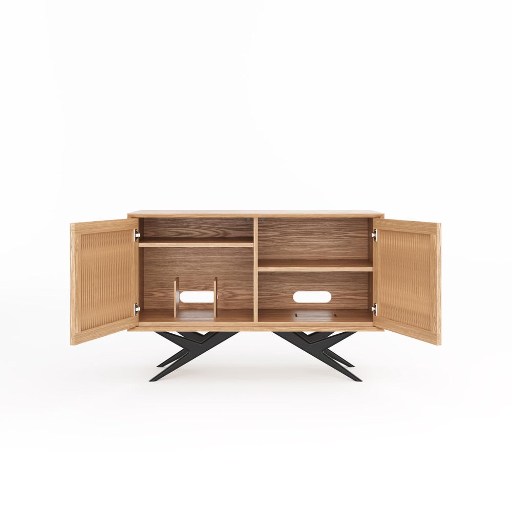 Perfect as media console, record player stand and vinyl storage for music enthusiasts.