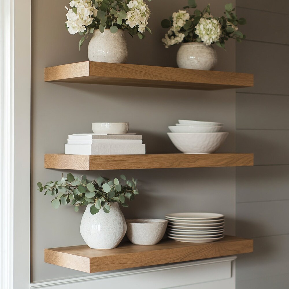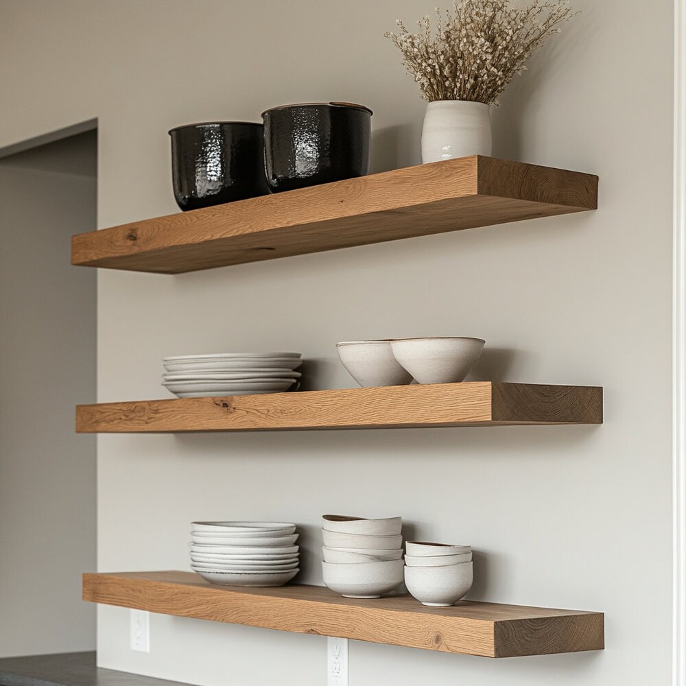 Ash Floating Shelves, Kitchen shelf, Hidden Bracket Shelves