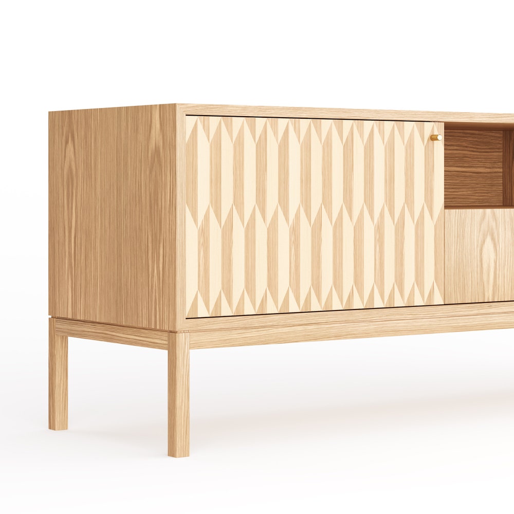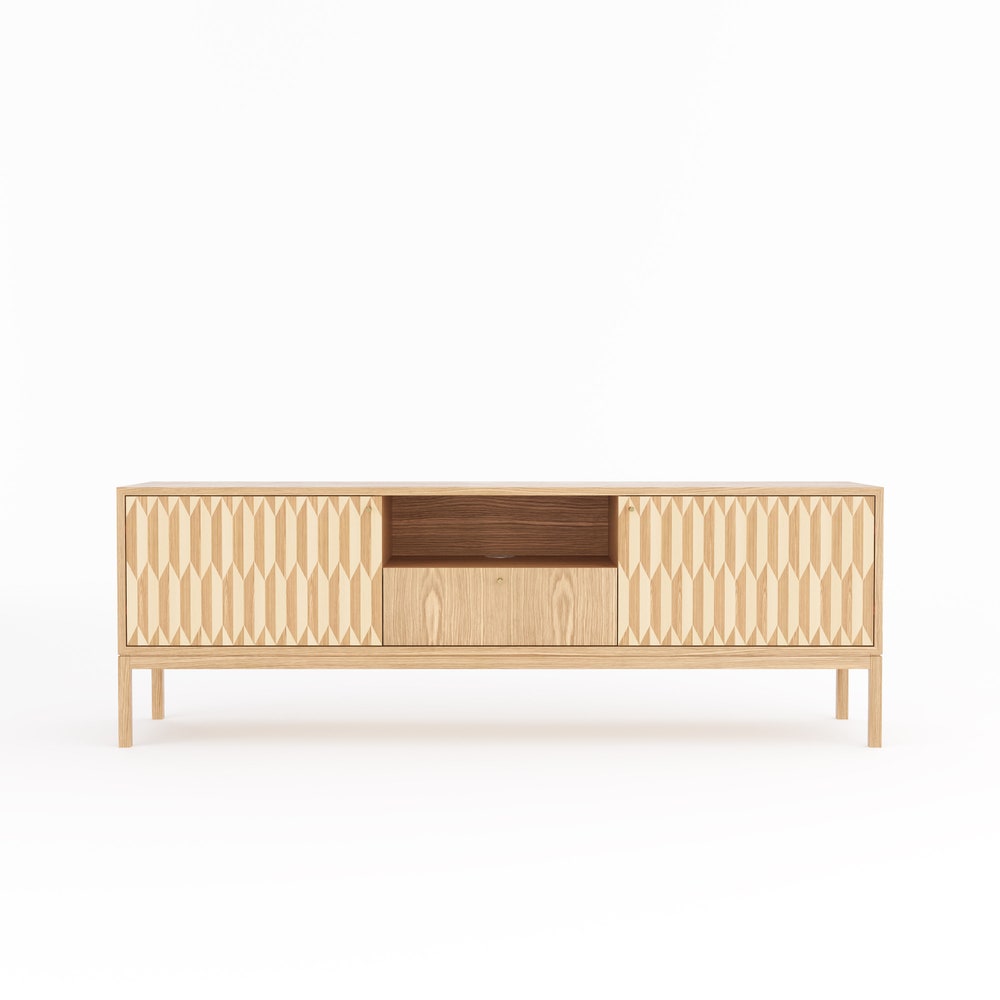 Oak sideboard, TV stand with two inlaid doors and one drawer in mid century modern style, credenza, dresser, commode, media cabinet center