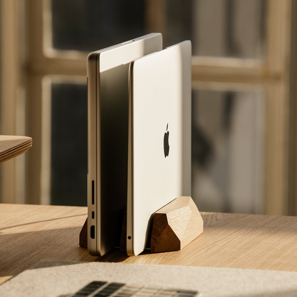 The Dual Laptop Dock is an innovative solution for your desk organization. The stand allows you to simultaneously store two devices: laptops or tablets up to 24mm (0.95 inch) thick. Streamline your work by securely storing your gadgets, organizing your desk space, and smoothly switching between the two devices.