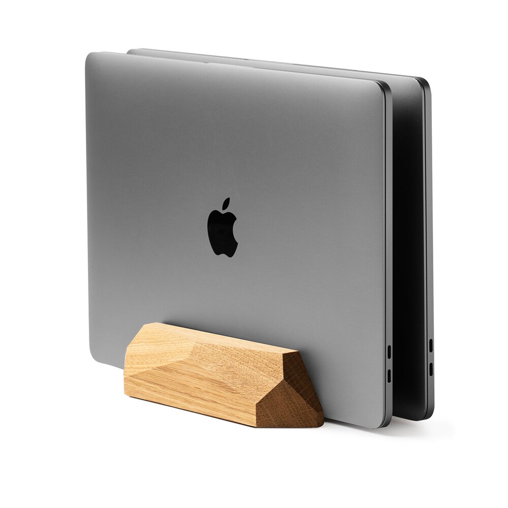 Oakywood Dual Laptop Stand Wood, Vertical Adjustable Macbook Double Dock Stand, Desk Organizer for Home Office, Valentine gift for Him