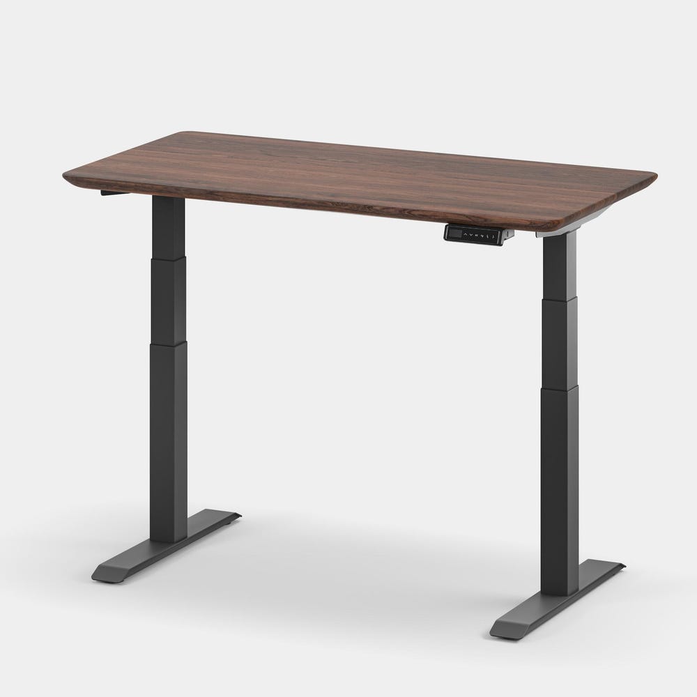 The table top of our standing desk is an ideal work surface – handcrafted in solid oak or walnut wood, hand-polished, and covered with natural oil wax. Working with wood is our passion – that’s why every standing desk is designed and manufactured in our workshop. A solid 42 mm (1.7”) table top covered with oil-wax with a matte finish has visible wood grains.
