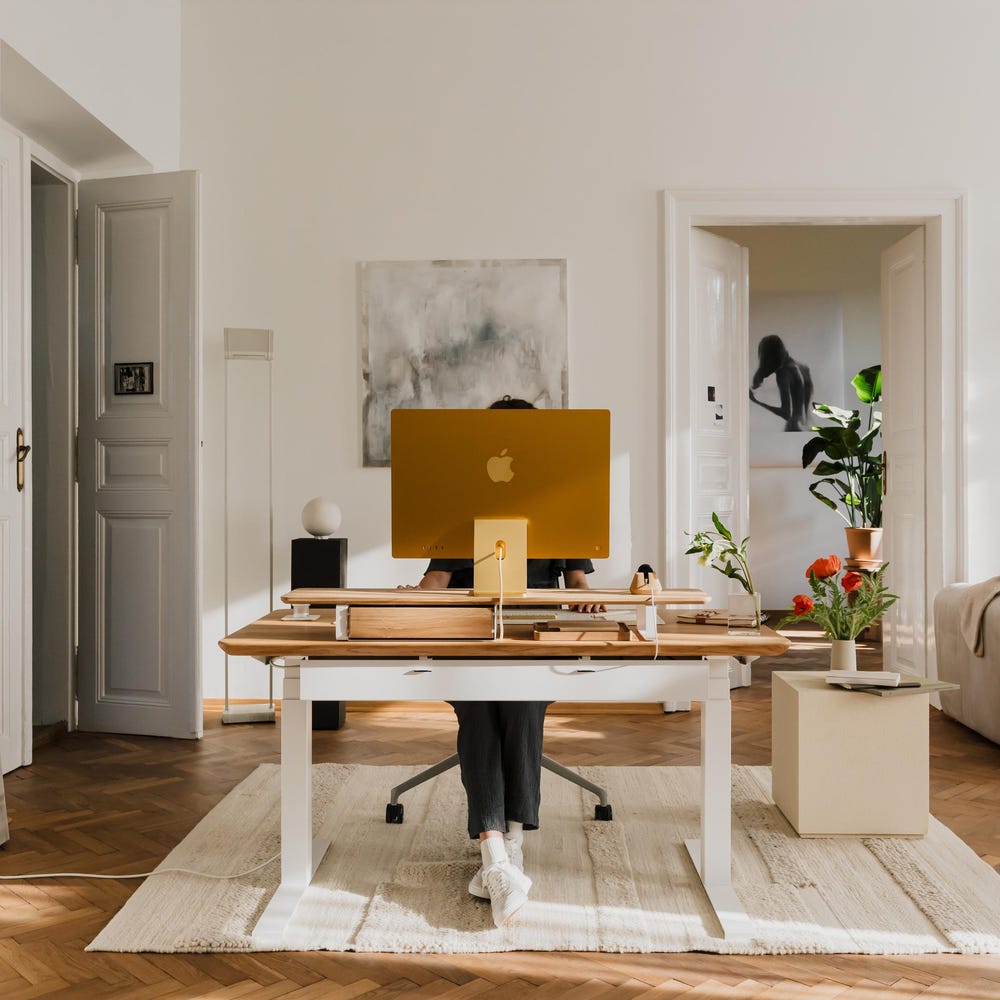 Allowing you to easily adjust its height, the Standing Desk revolutionizes your workspace and transforms it into an ergonomic haven for productivity, motivation, and wellbeing. Its sturdy construction, together with the smart height adjustment system allow you to precisely regulate your desk and smoothly change your position from sitting to standing – elevating your workspace comfort.