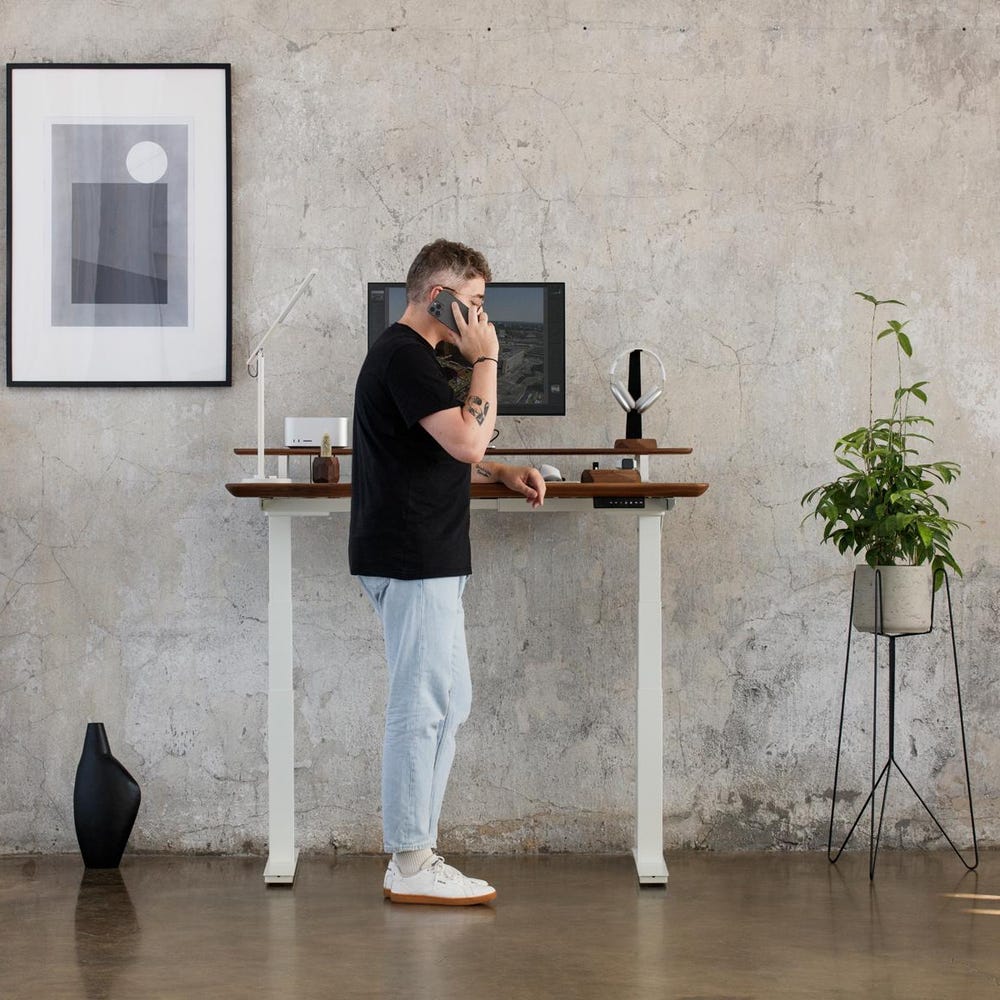 Oakywood Solid Wood Standing Desk Bundle – Standing Desk, White Legs, Adjustable-Height Desk, Electric Desk, Handcrafted Computer Desk