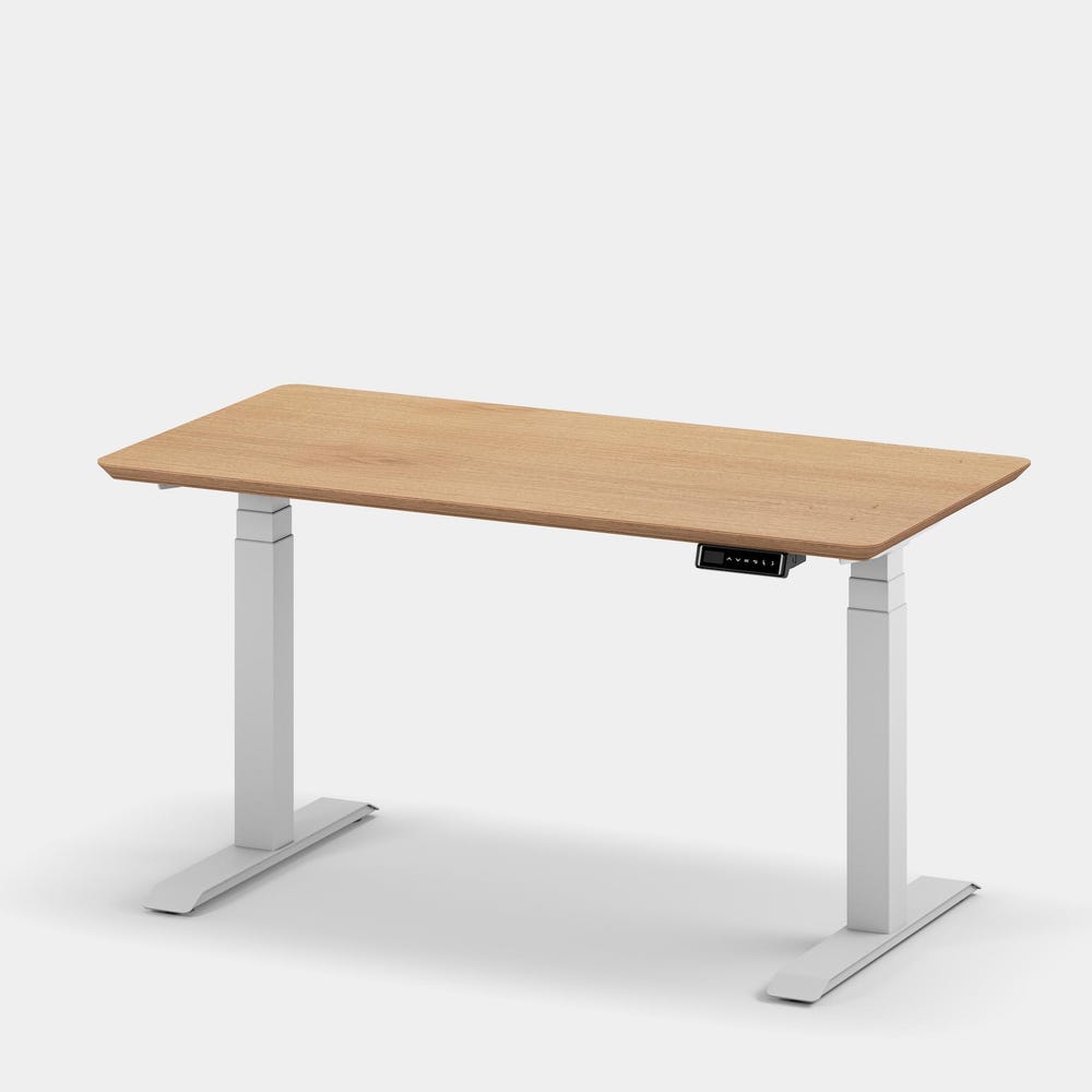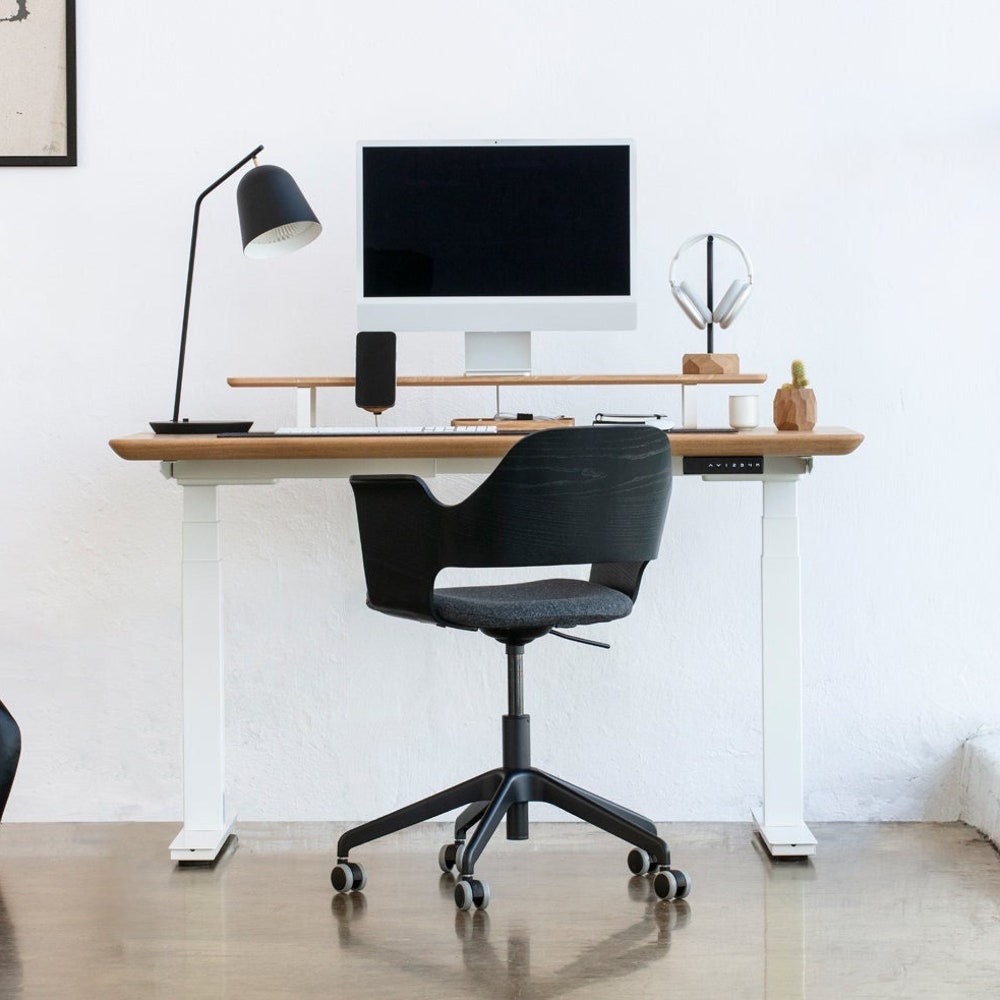 Oakywood Solid Wood Standing Desk – White legs, Sitting to Standing Desk, Adjustable-Height Desk, Electric Desk, Handcrafted Computer Desk