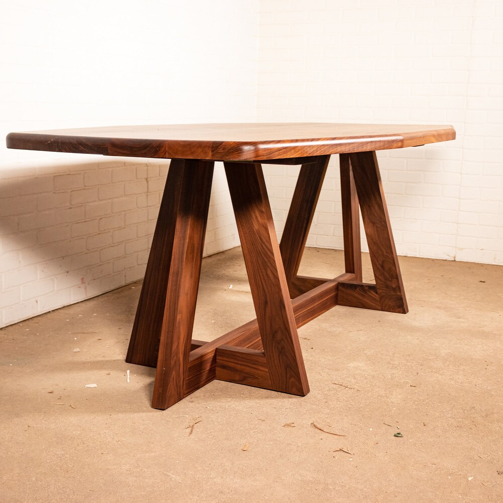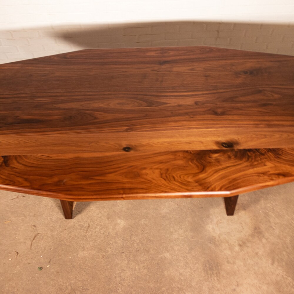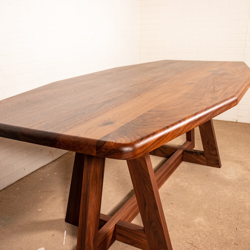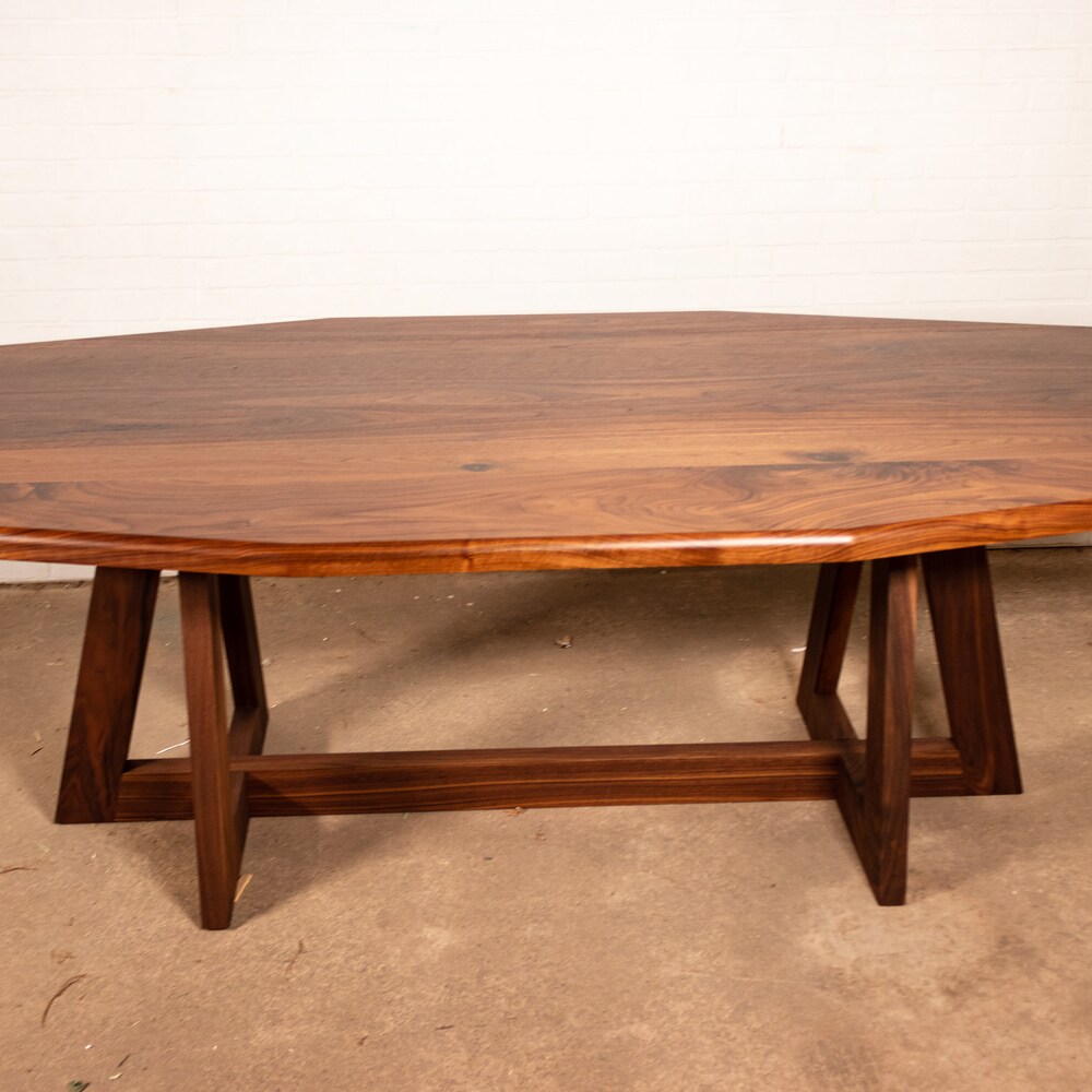 Octagon Dining Table, Custom Walnut Table, Octagon Shaped Walnut Dining Table on Double Cross Trestle Base, Octagonal Dining Table