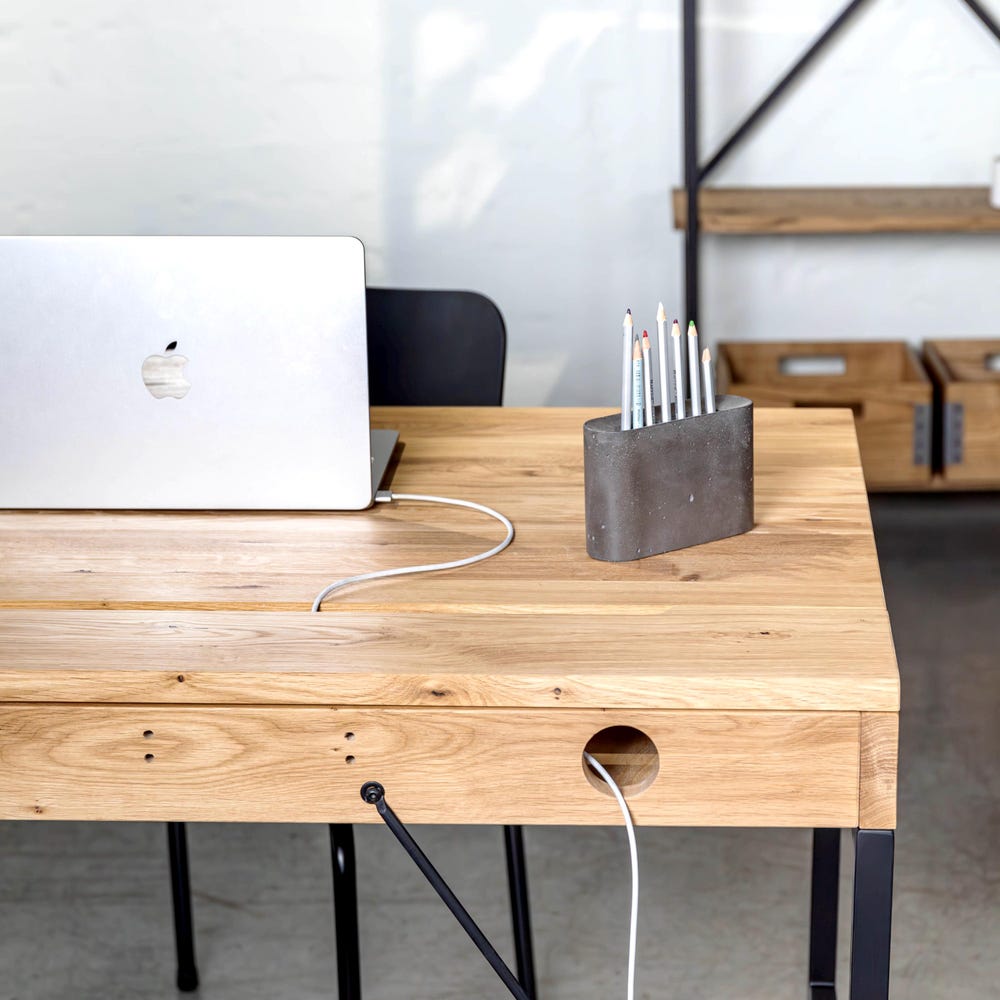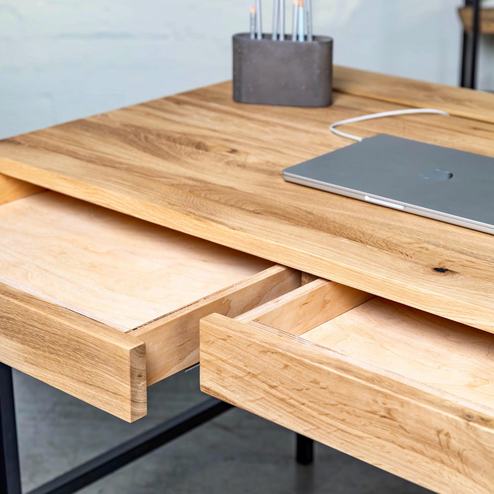 Office Desk Mennen with Сontainer Oak Wooden Table Executive Farmhouse Computer Desk Solid Oak Wood Table Writing Desk Oak Wood Office Table