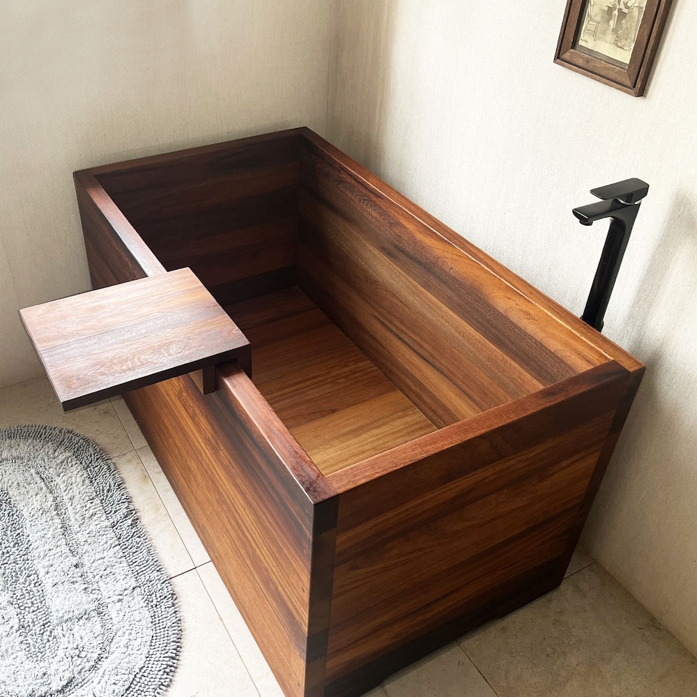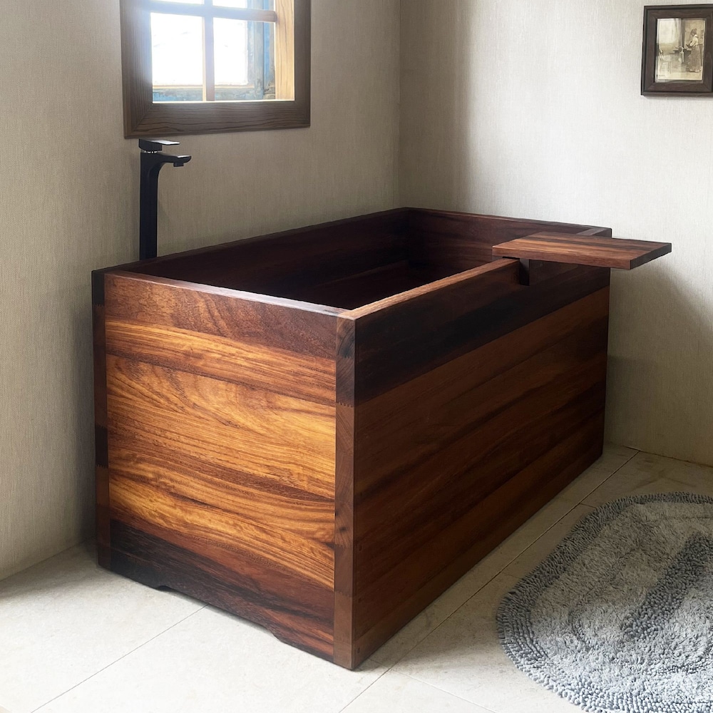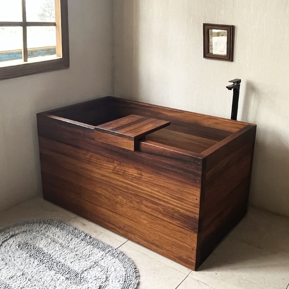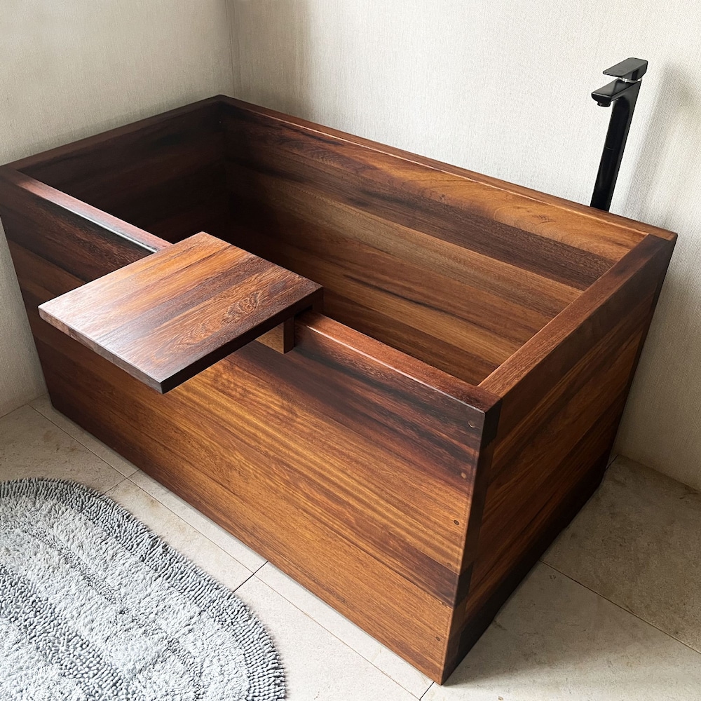 Ofuro Wooden Soaking Bathtub Iroko Wood Customizable
