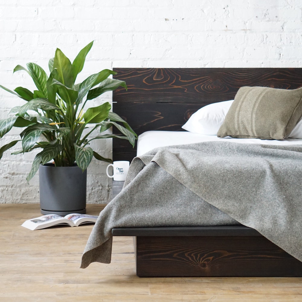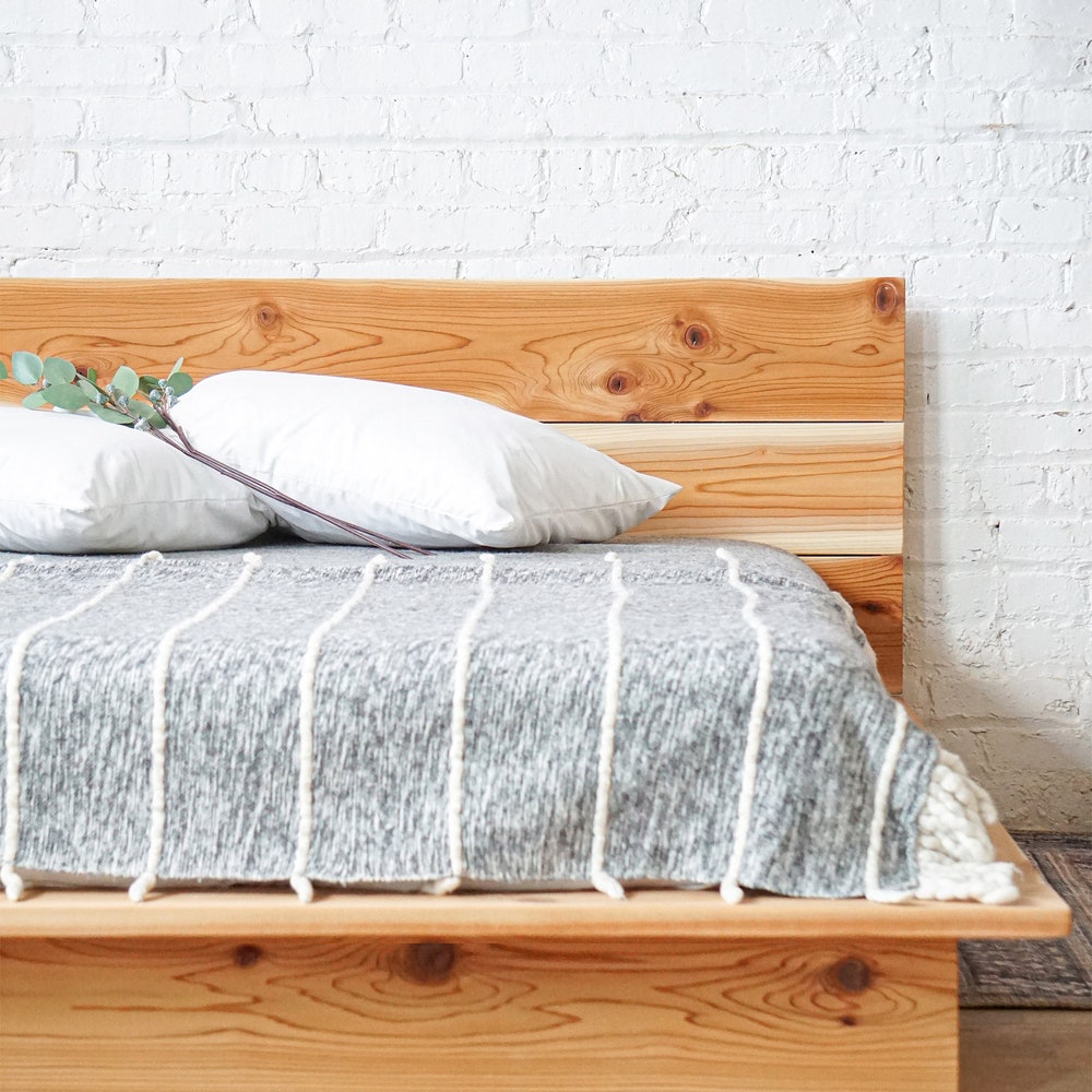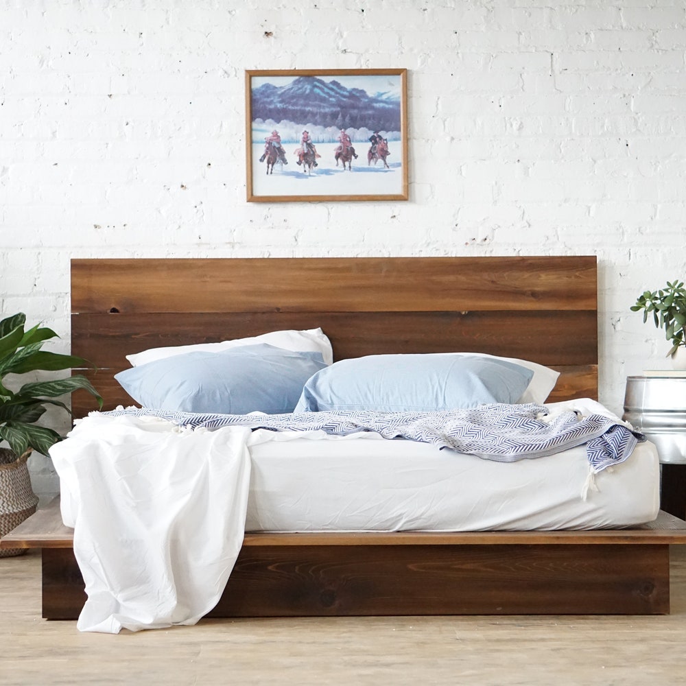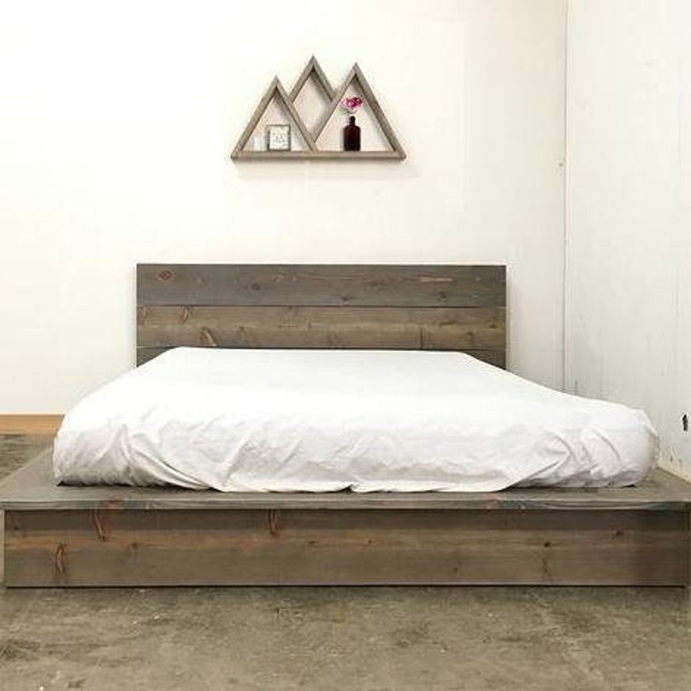 This modern rustic platform bed is perfect for any home, from country cottage to city loft. This platform bed and headboard is made of solid, carefully selected planks. We locally source all the materials used to hand make this epic bed. The natural grain gives you warmth and vibes of the wild, while the sleek low profile design keeps things just modern enough.