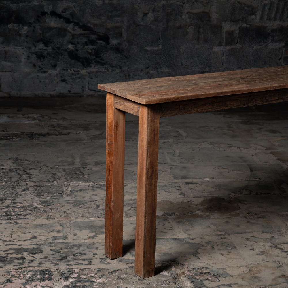 This Reclaimed Rustic wood Console table is handcrafted from years old weathered wood planks which are sourced from different parts of india. years of naturally aged wood has been used in making these beautiful Console tables for you. Each piece has its own uniqueness in terms of wood color , old screw & knot holes, scratches, cracks , natural Raw texture line. This is what makes every piece one of kind.