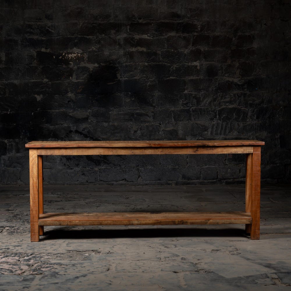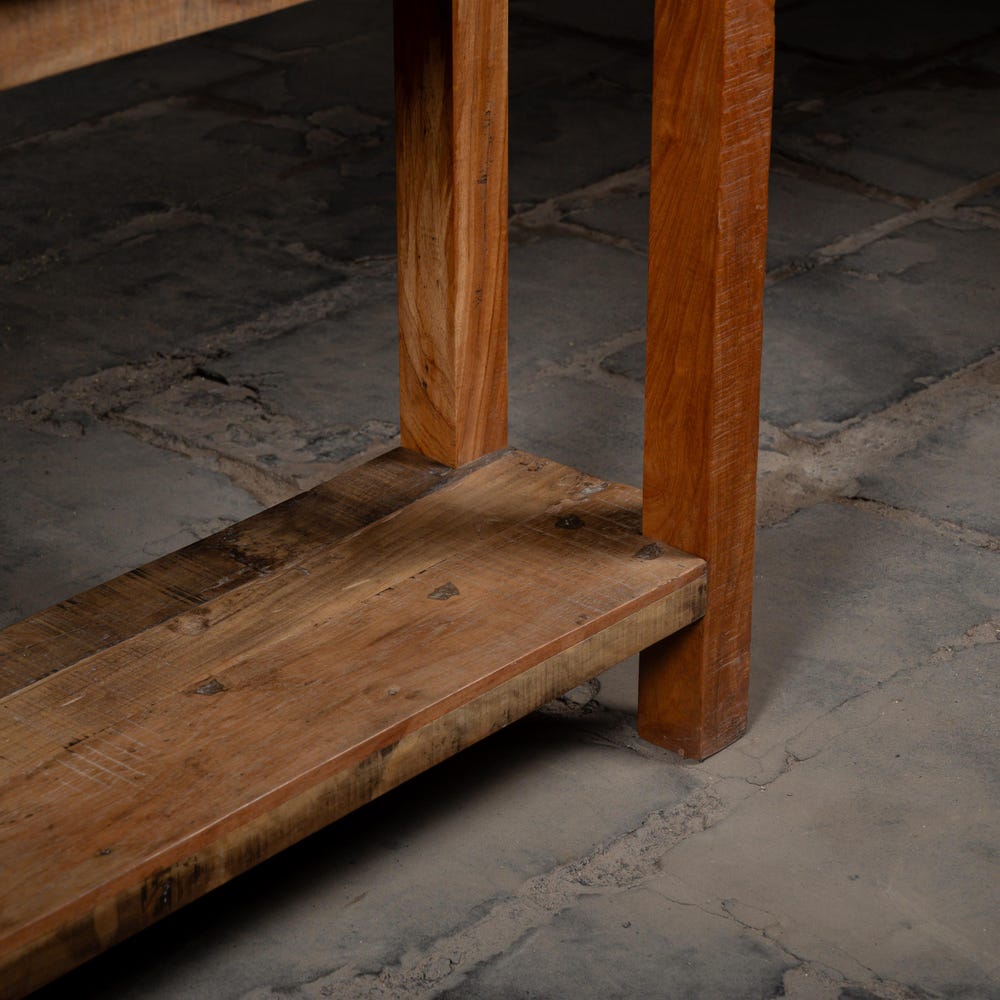 This Reclaimed Solid wood Console table is handcrafted from years old reclaimed wood planks which are sourced from different parts of india. years of naturally aged wood has been used in making these beautiful Console tables for you. Each piece has its own uniqueness in terms of wood color , old screw & knot holes, scratches, cracks , natural Raw texture line. This is what makes every piece one of kind.