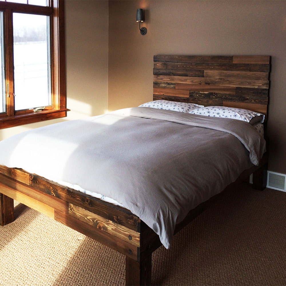 Original Knot and Grain – Barnwood Style Bed Frame and Headboard Set – Handmade in USA
