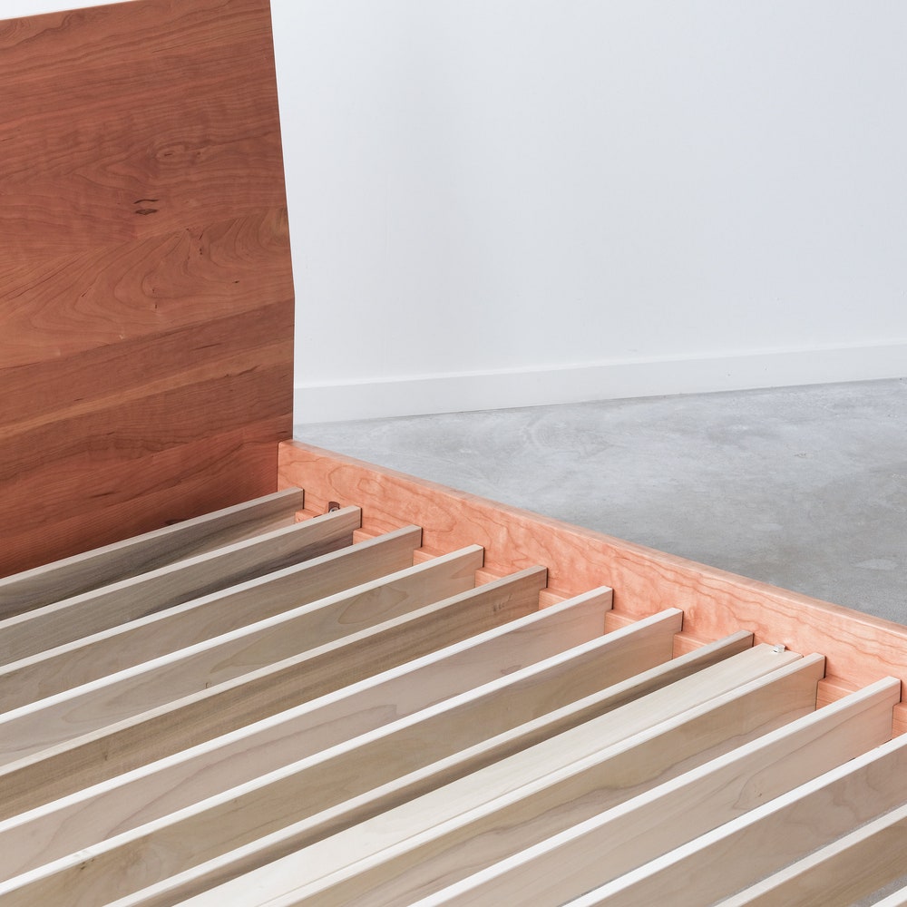 Our low profile Oswego bed is handcrafted and built using traditional joinery. Disassembles for shipping. Finished with a clear, low sheen conversion varnish that provides durability and water resistance. Each bed is unique and will have variations in wood grain. Pictured: Cherry (photos 1 -5) White Oak (photos 6 + 7) Also Available: Walnut or […]
