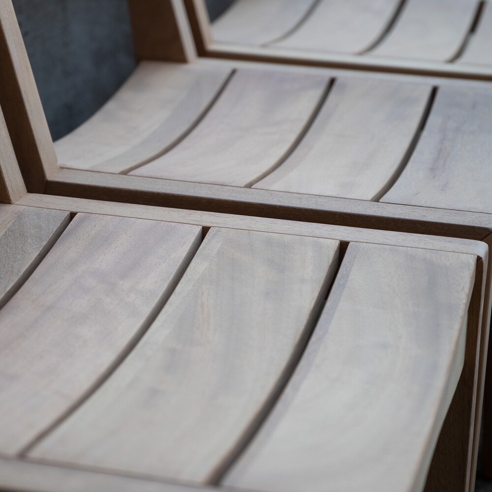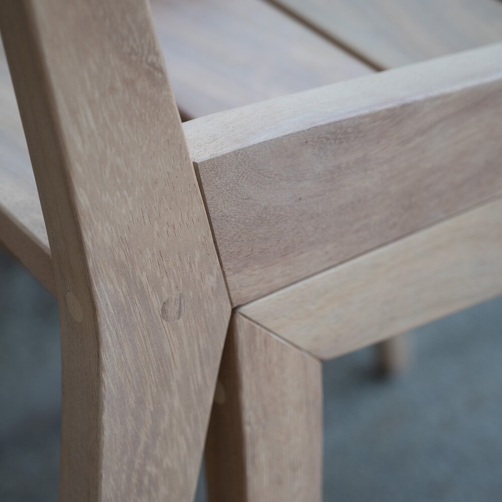 Built using mortise and tenon joinery and there is no exposed hardware. We only use grade A Burmese Teak or Mahogany for outdoor chairs – i.e. no knots, no sapwood, only straight grain lumber. These can be exposed 365 days a year to full sun and elements. Design note – this chair was designed with no exposed end-grain greatly improving longevity and resistance to the elements.