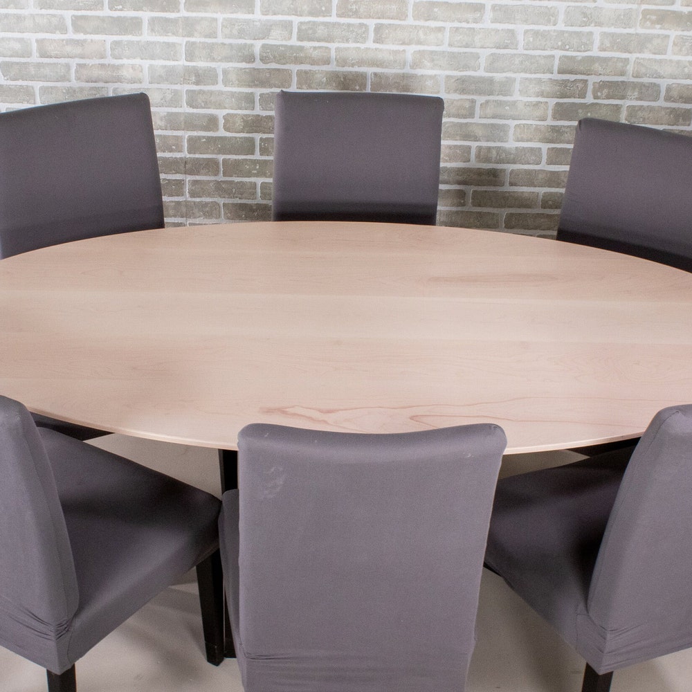 An oval dining room table is a nice addition to a dining space. It is easy to walk around and people can see each other easily which helps conversation to flow well. This particular design is great because the steel pedestal base allows for flexibility on chair placement. We build every table to order so there are many ways to make this table perfect for you.