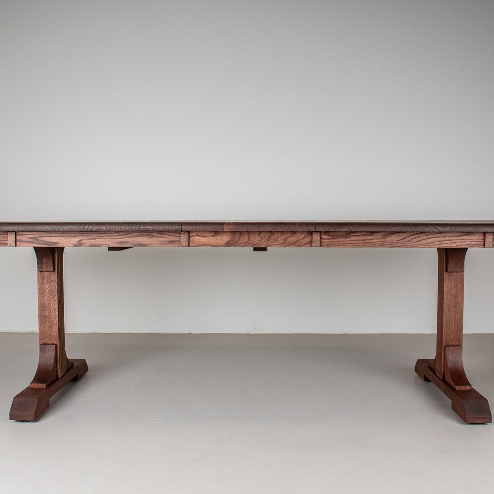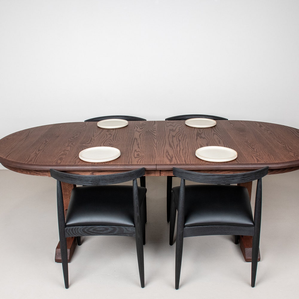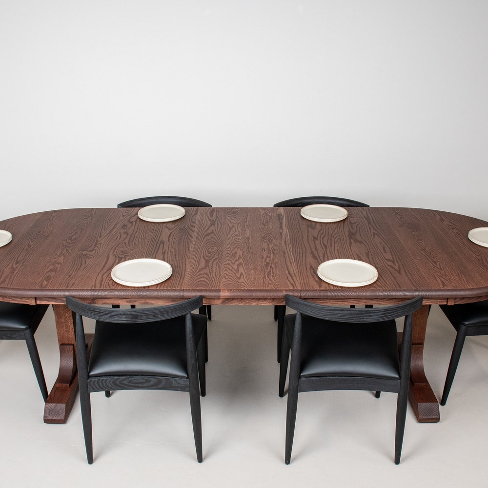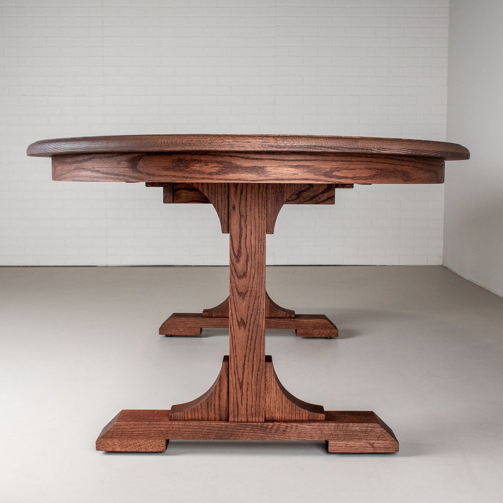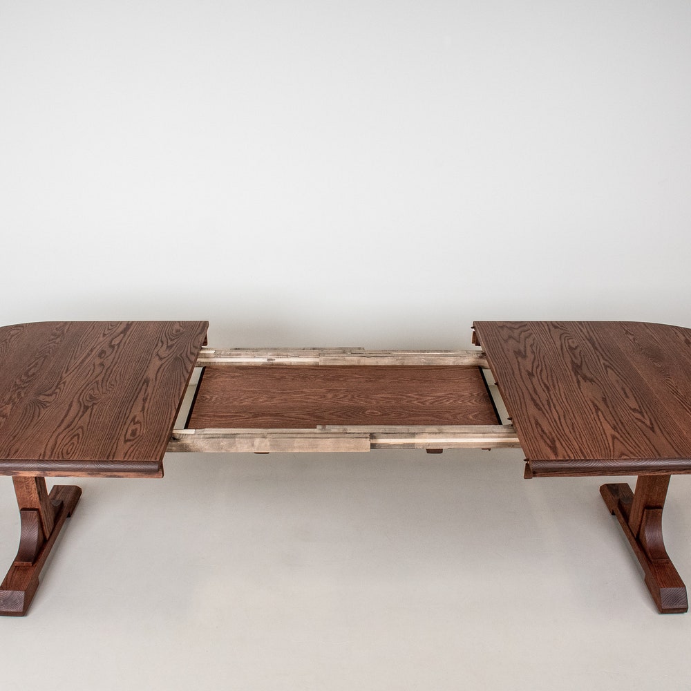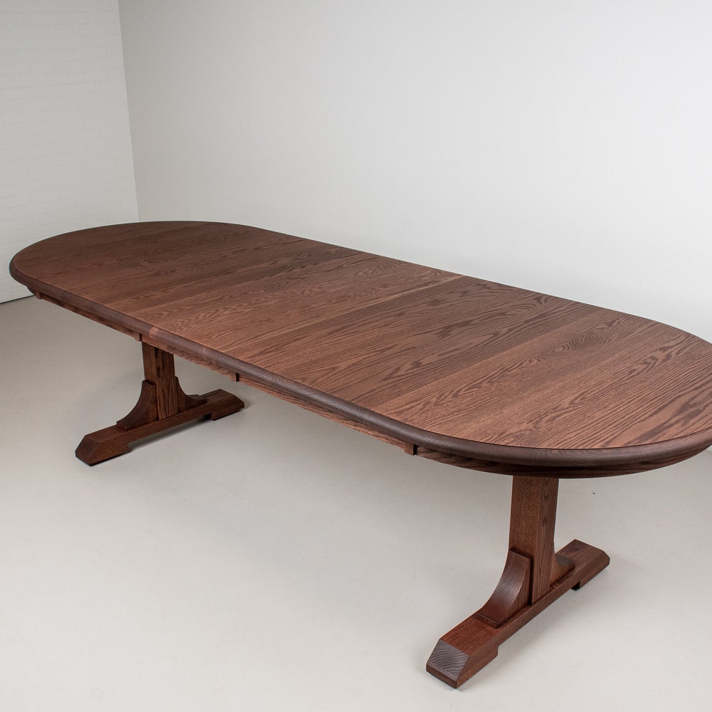 An extension table like this oval dining table with extensions allows you to always be ready for a few extra people around the table. The core table looks great for everyday use – and the leaves are easily added to accommodate a few more people. We build every table to order so there are many ways to make this table perfect for you.