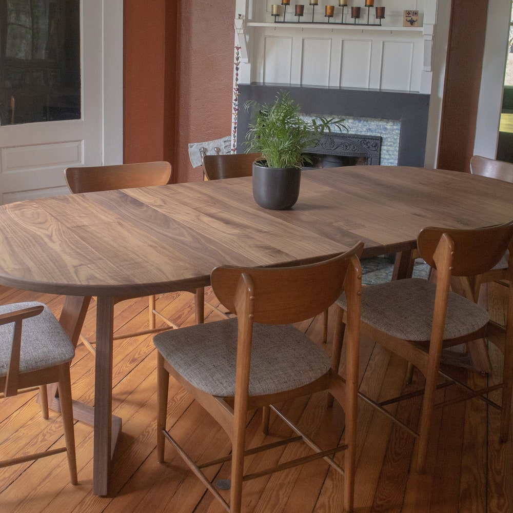An extension table like this oval dining table allows you to always be ready for a few extra people around the table. The core table looks great for everyday use – and the leaves are easily added to the middle to accommodate a few more people. We build every table to order so there are many ways to make this table perfect for you.