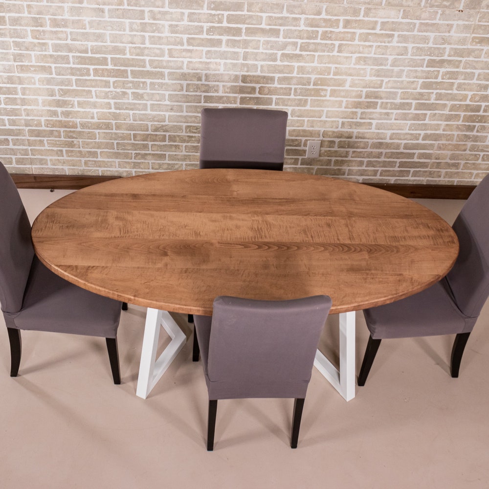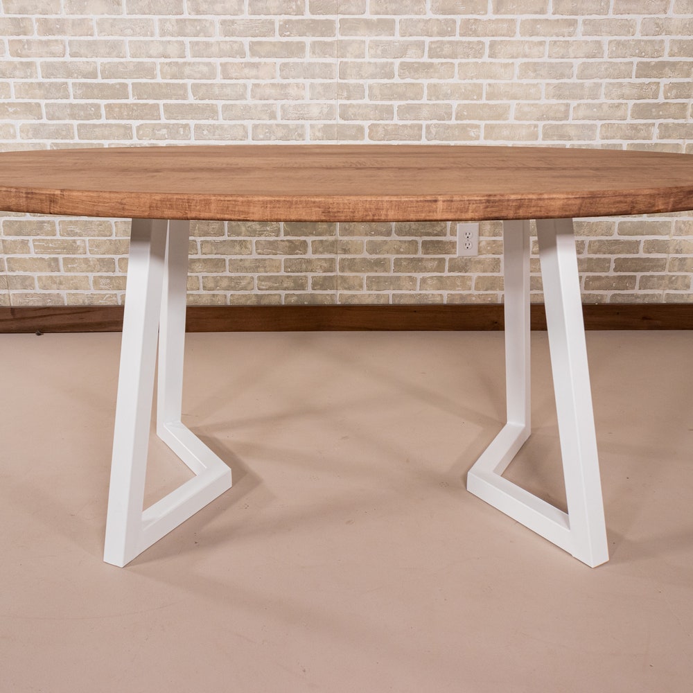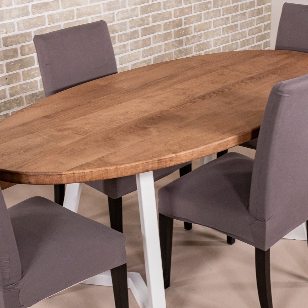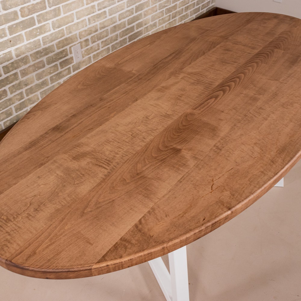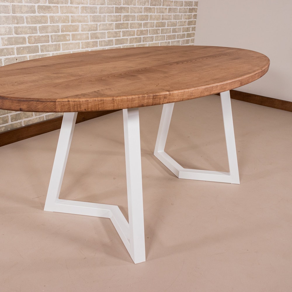 Oval Kitchen Table, Light Brown Wood Table on White Steel Legs, Minimalist Kitchen Table, Oval Maple Table, Small Oval Dining Table