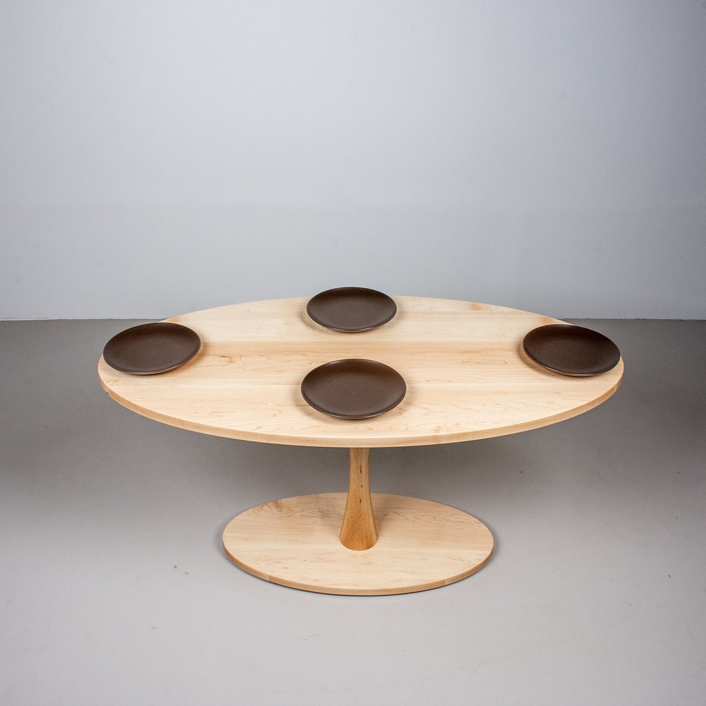 This oval maple table is well suited to Scandinavian style spaces. The natural color of the maple and the simple lines highlight the minimalist style. We build every table to order so there are many ways to make this table perfect for you.