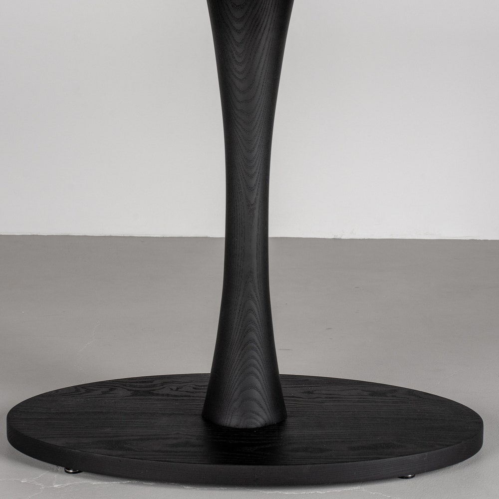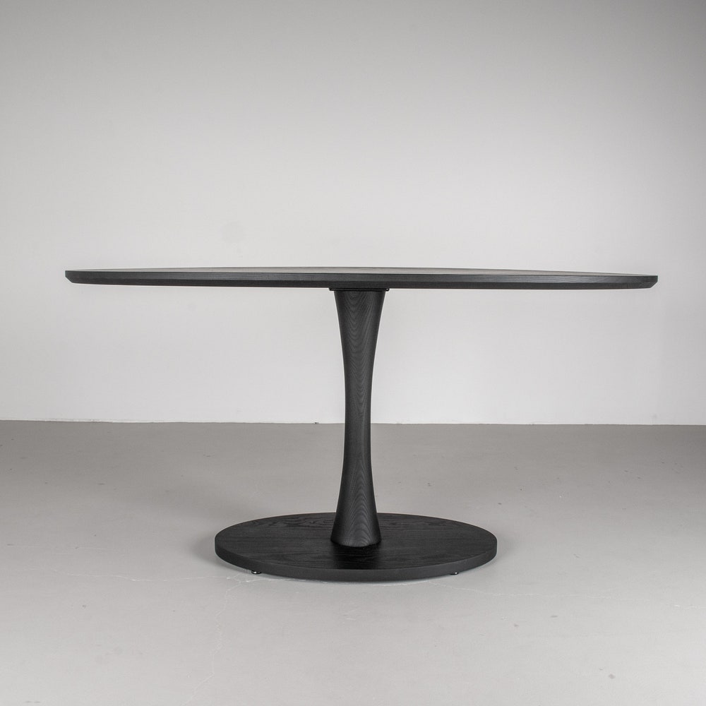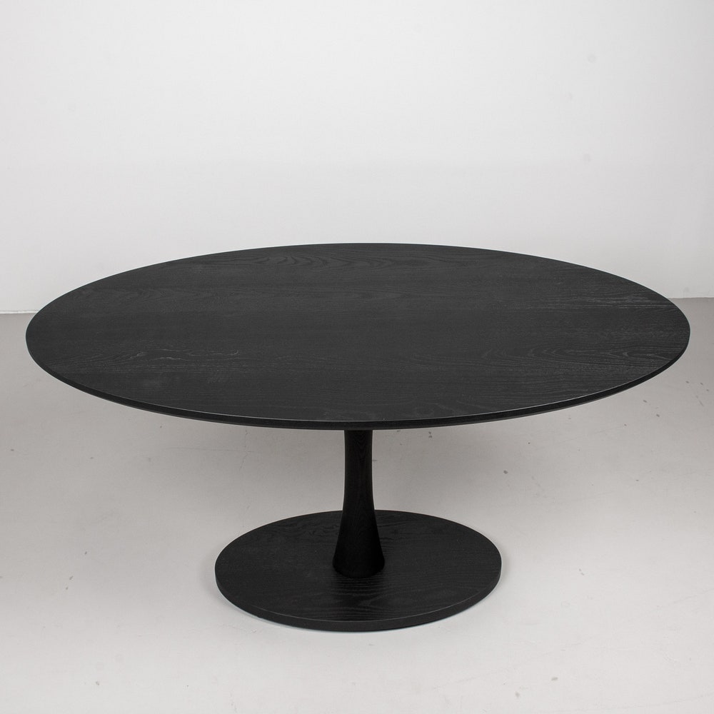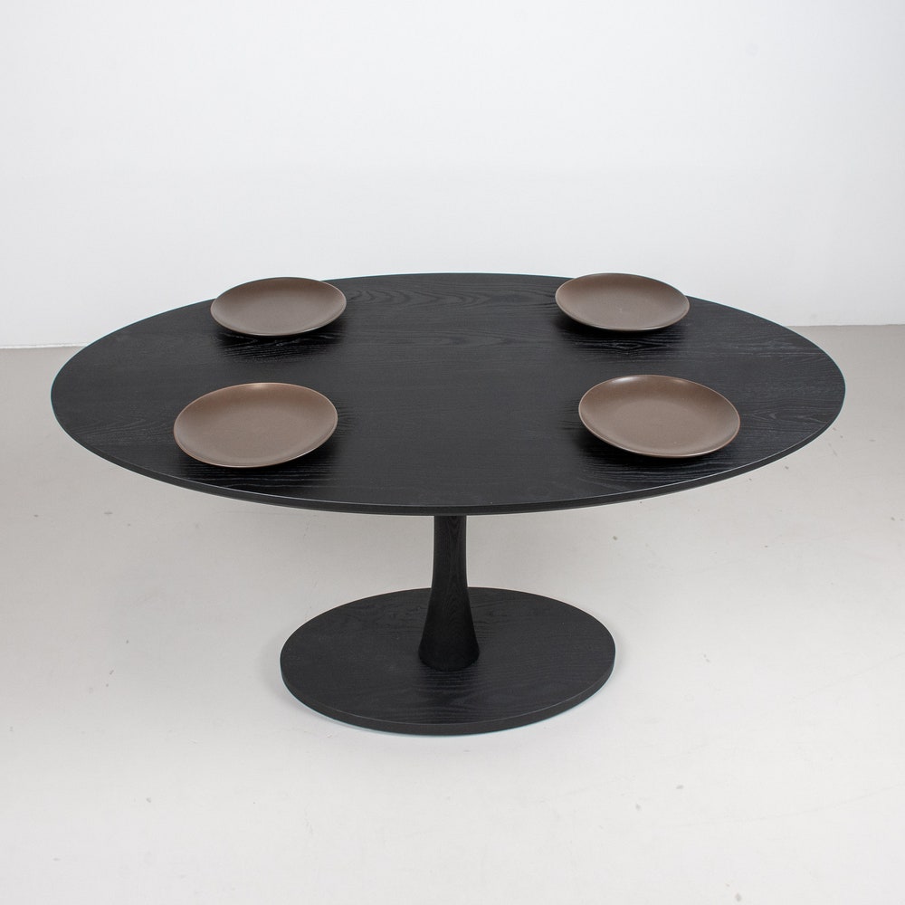 A dark table is a great way to create a focal point in a space. This black wood dining table does just that! Made of solid ash and finished in black, it features a subtle tone on tone quality that gives the table some dimension. As a pedestal table it offers a high degree of flexibility with seating around the table. We build every table to order so there are many ways to make this table perfect for you.