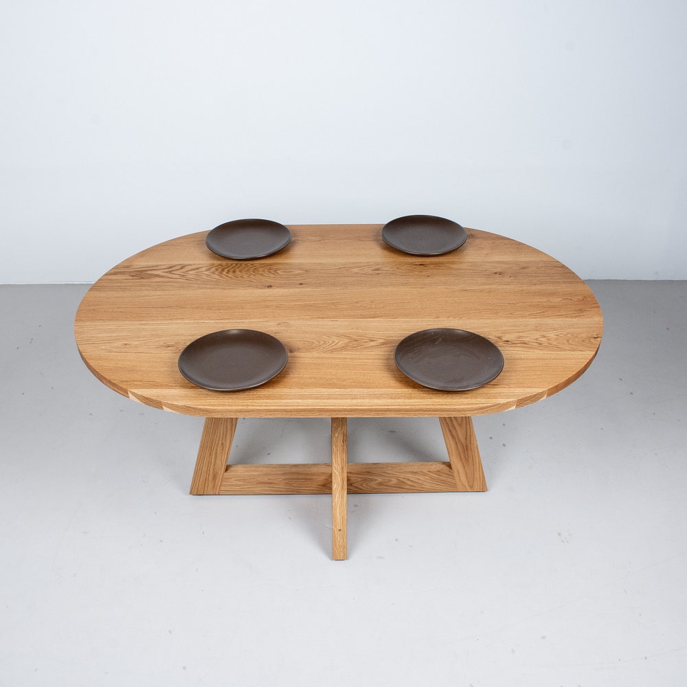 This oval white oak table is designed for small spaces. With its modern look and light coloring, it sits lightly in a space. We build every table to order so there are many ways to make this table perfect for you.