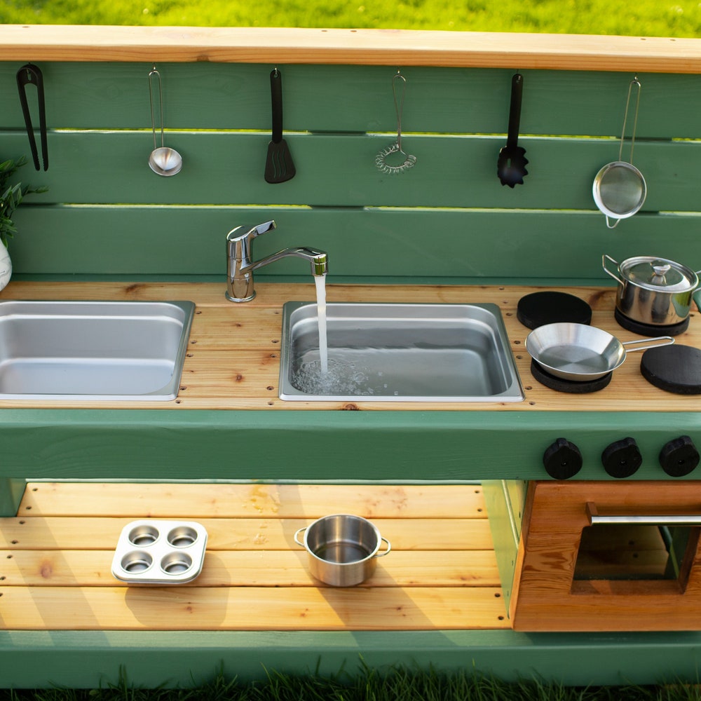 NEW: Add a drain to your mud kitchen in one or both sinks! Comes with a sink stopper.
