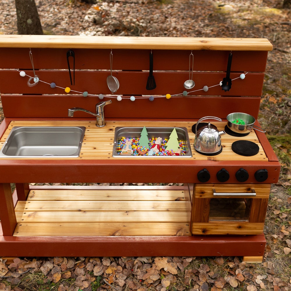 Painted Mud Kitchen with Oven and Working Faucet | Cedar Play Kitchen for Toddlers and Kids| Sensory Play | Sand Water Table | Montessori