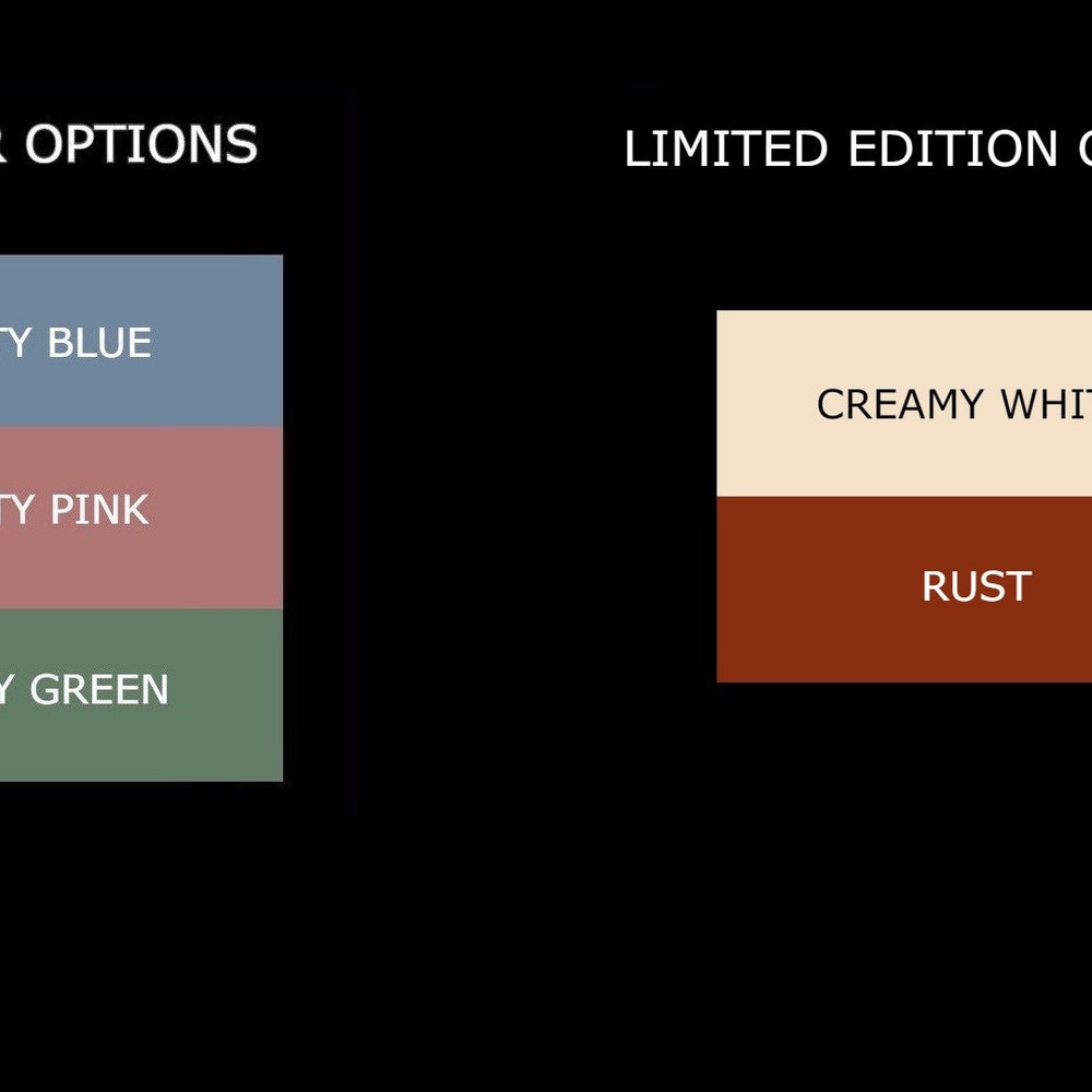 | Please choose colour | Dusty Blue, Dusty Green, Dusty Pink, NEW: Cream White, NEW: Rust |