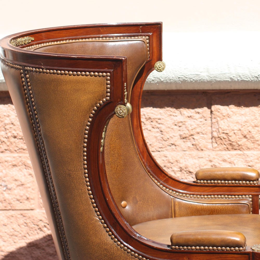 Pair Empire Style Mahogany Bergères – French Gilt Bronze & Leather Armchairs, Circa 1900,Antique Accent Chairs,Mid Century Chairs,Home Decor