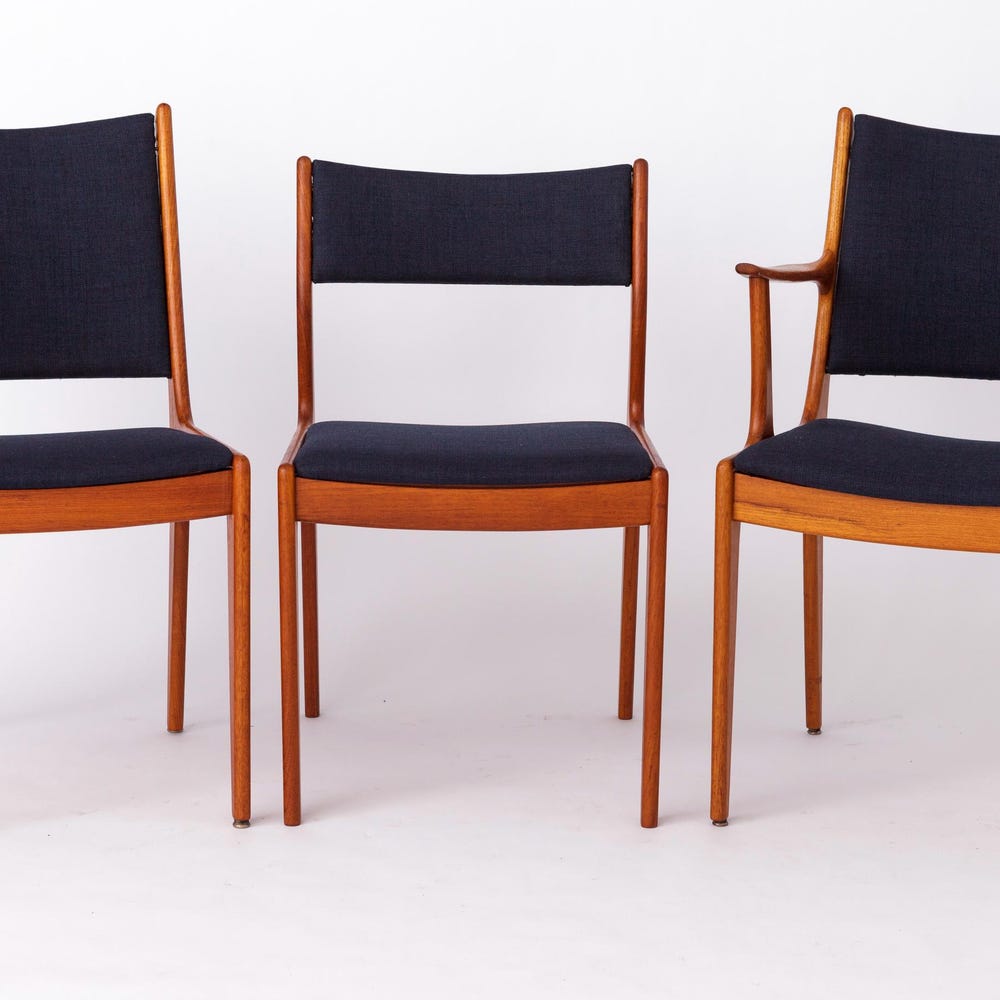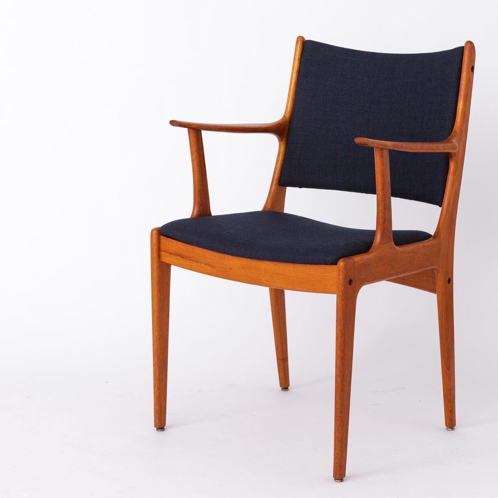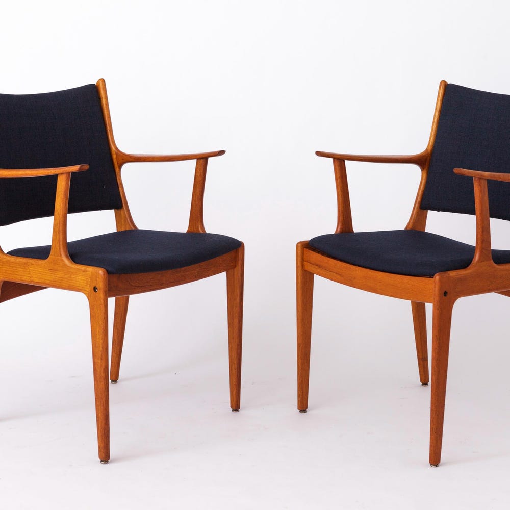 Pair of Danish Armchairs by Johannes Andersen | 1960s Teak & Navy Blue Upholstery | Mid-Century Modern Design