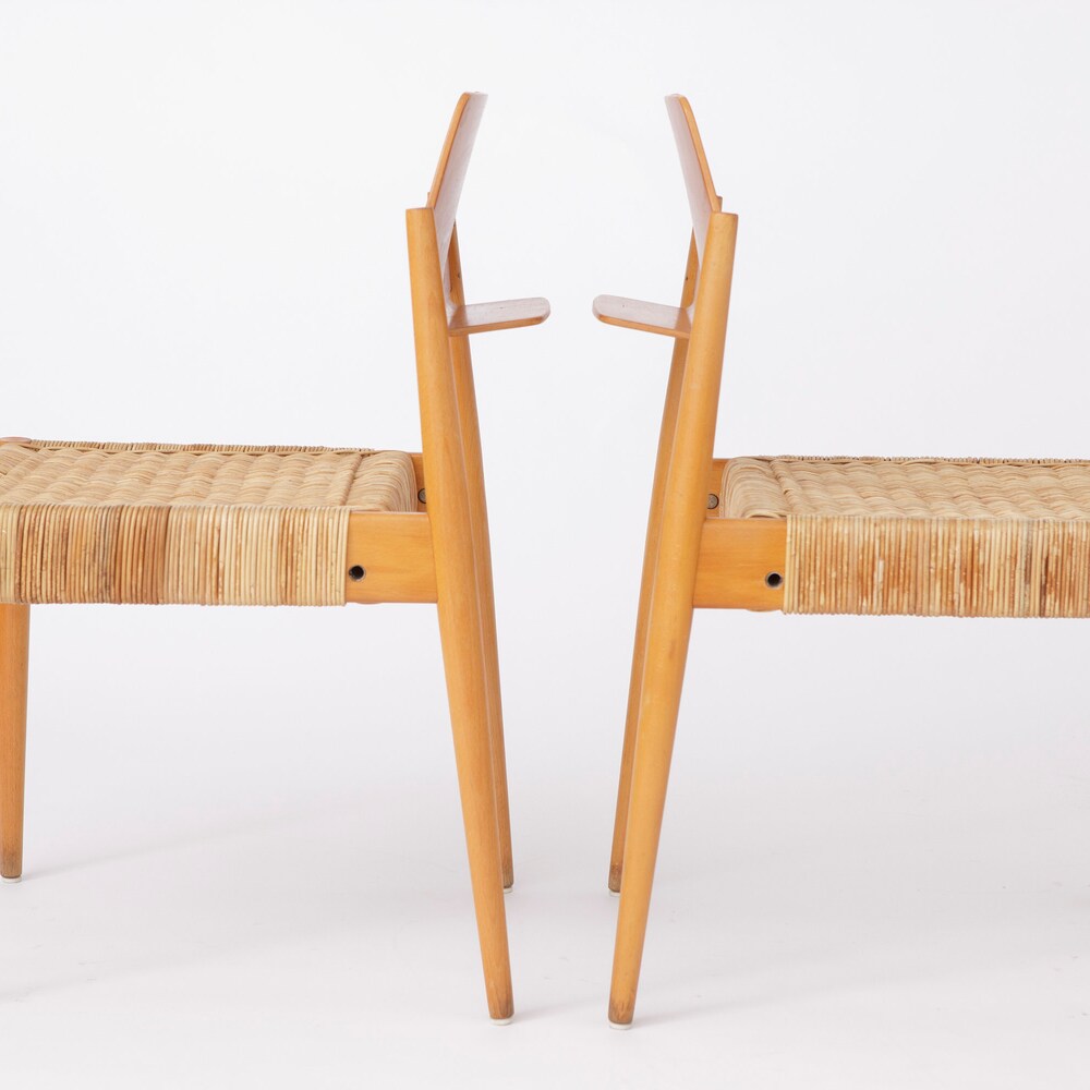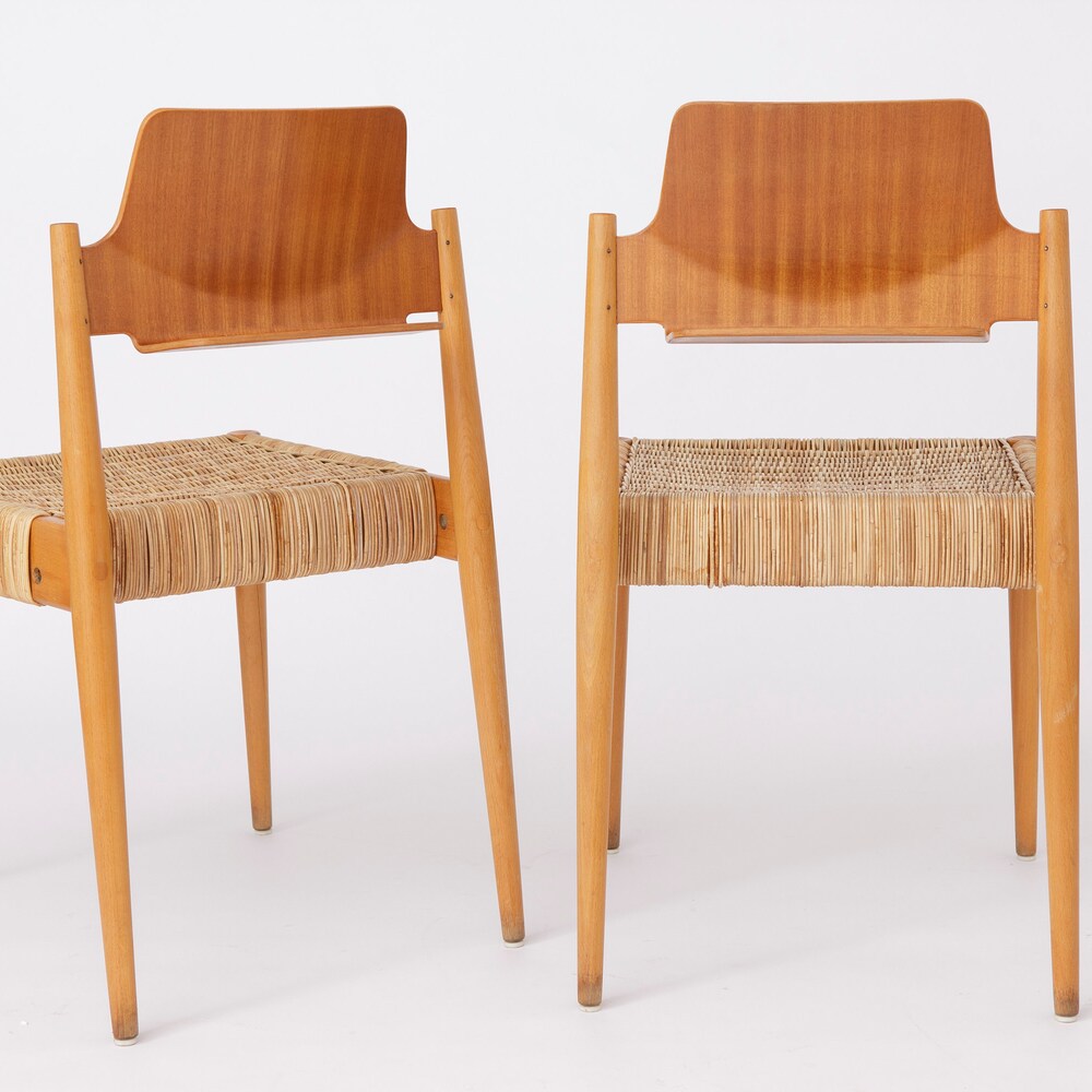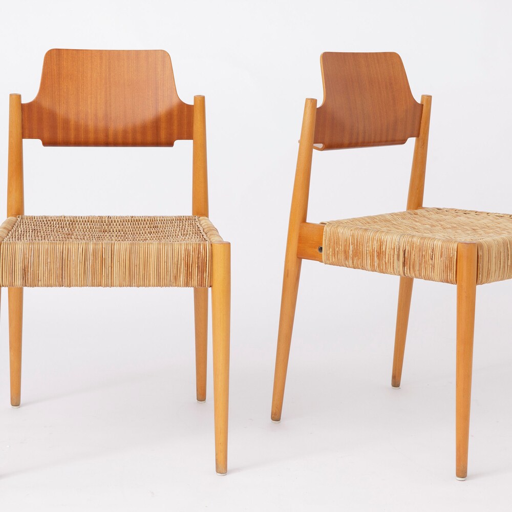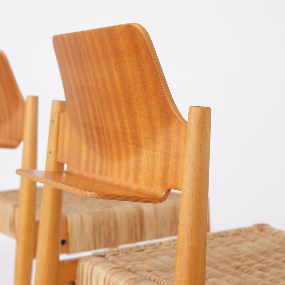 Pair of Egon Eiermann SE19 Chairs for Wilde + Spieth, 1953 – Beech & Willow Braid