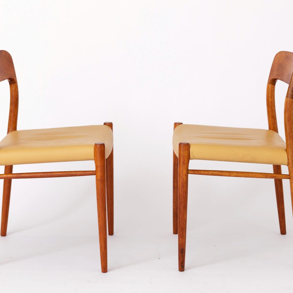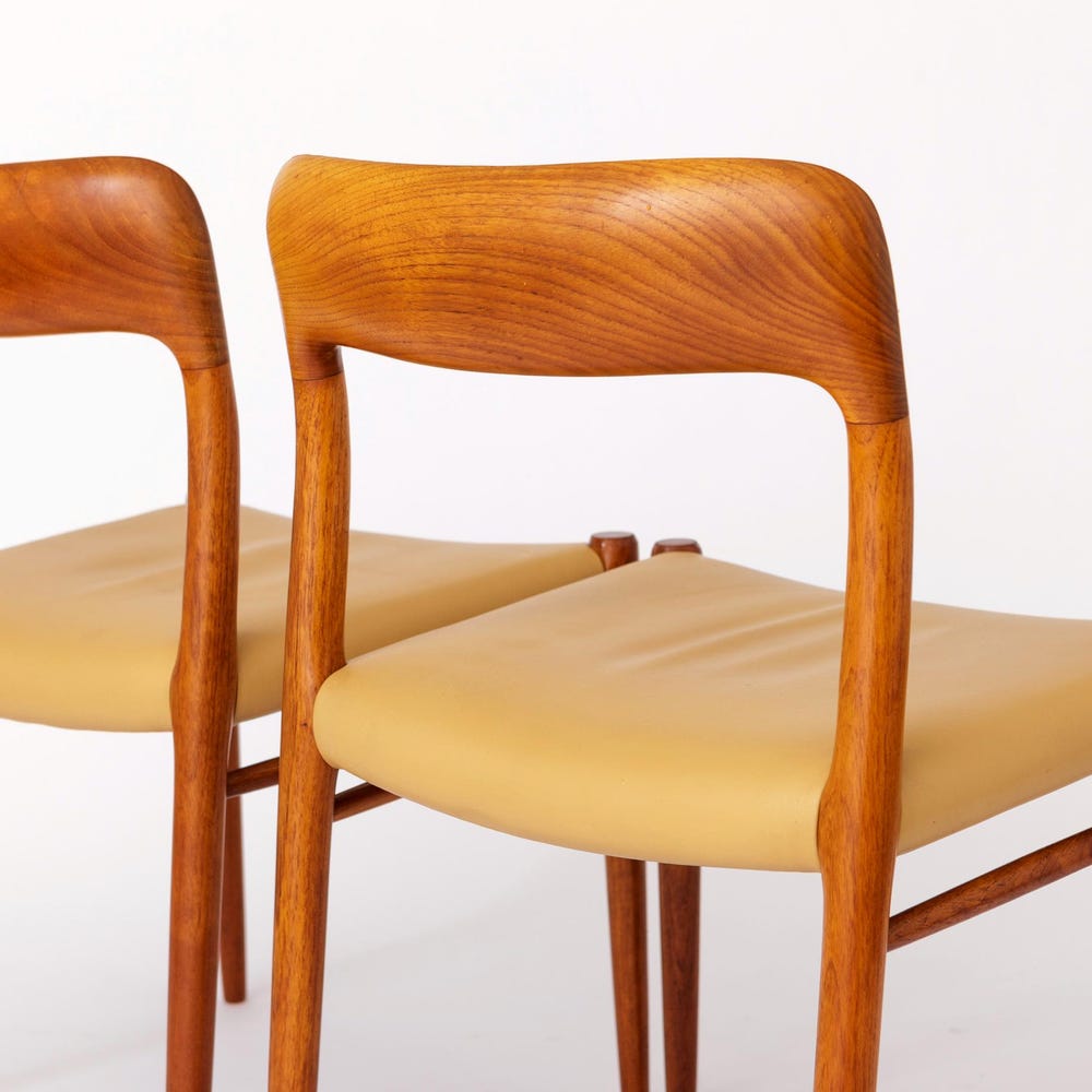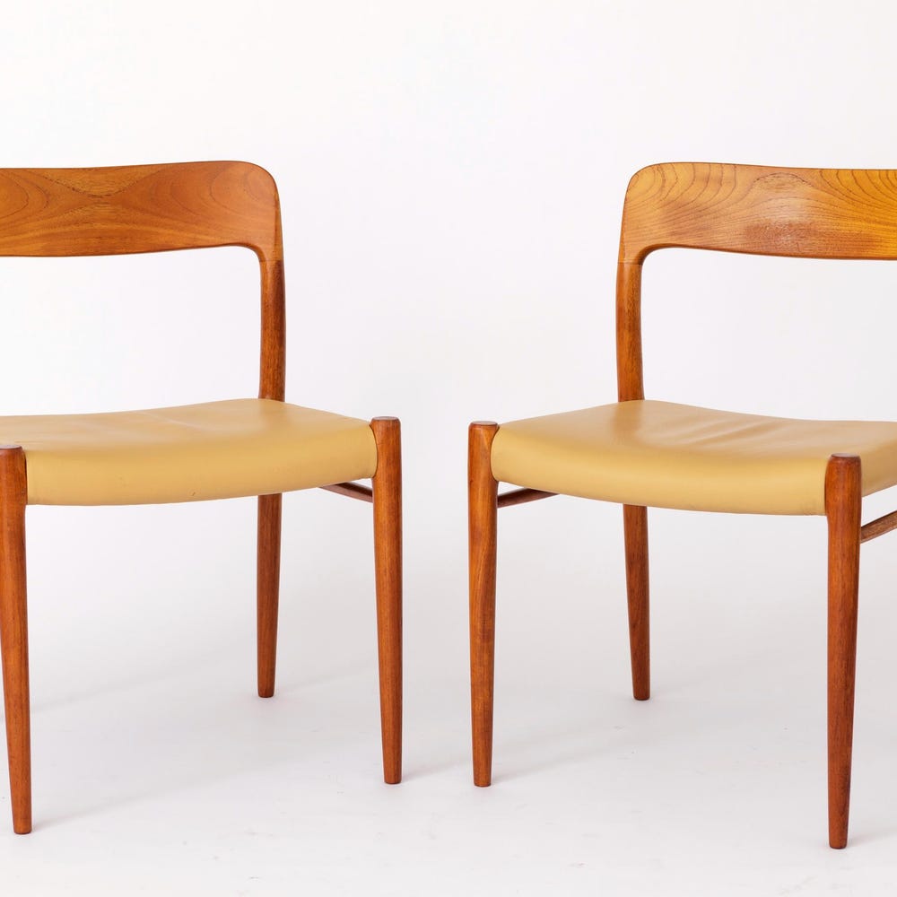 🌟 Pair of Niels Otto Møller Chairs, Model 75, with Beige Leather Covers (1960s–1970s)