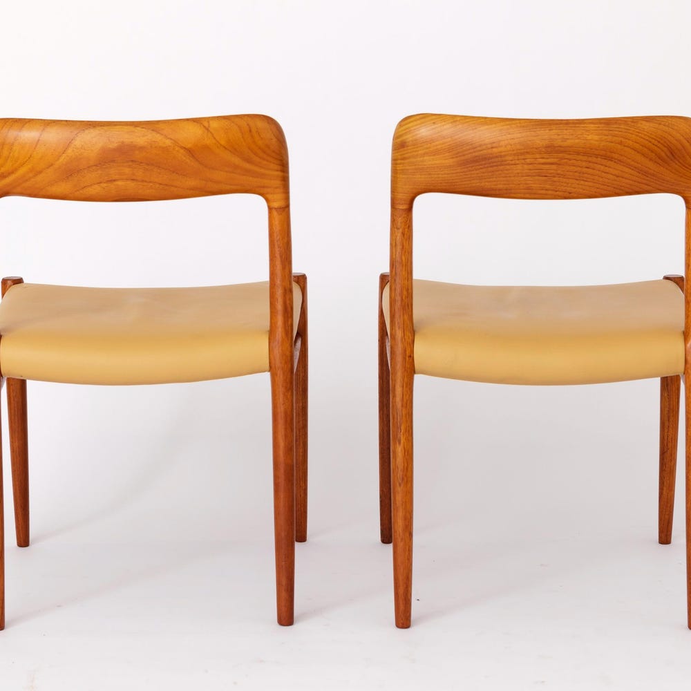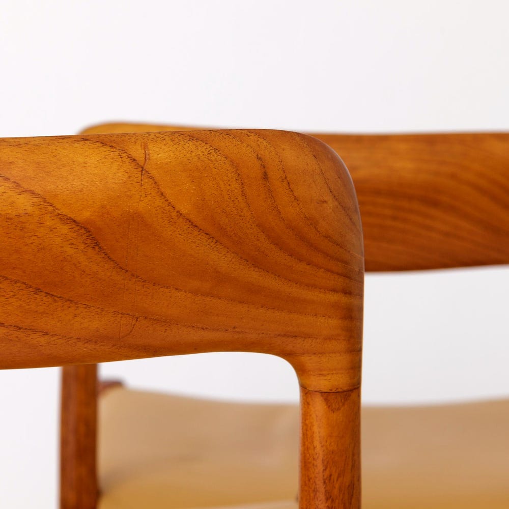 Pair of Niels Otto Møller Chairs, Model 75 | Teak Frame & Beige Leather | 1960s-1970s | Worldwide Shipping