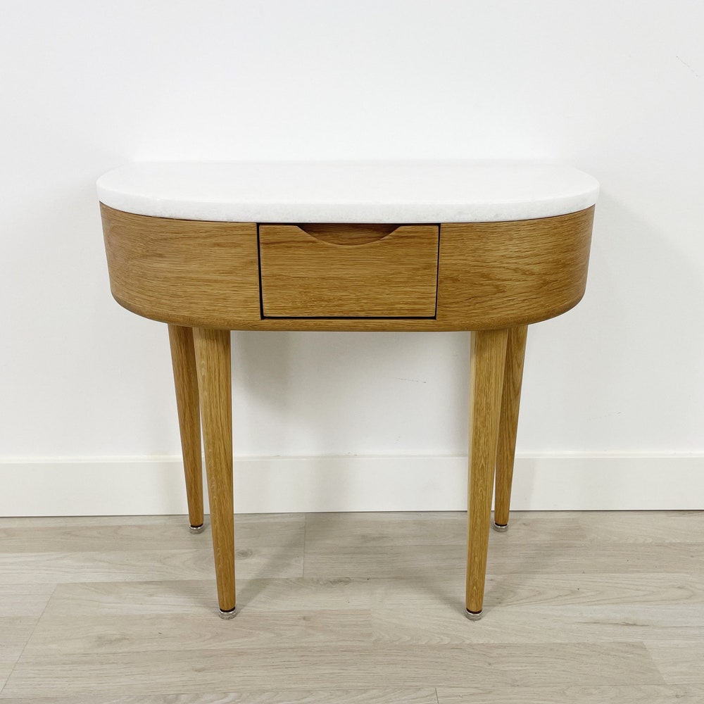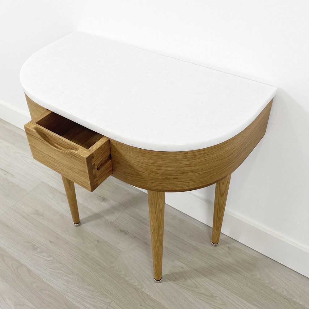 Black oak entryway shelf with FLUTED drawers / narrow entryway table